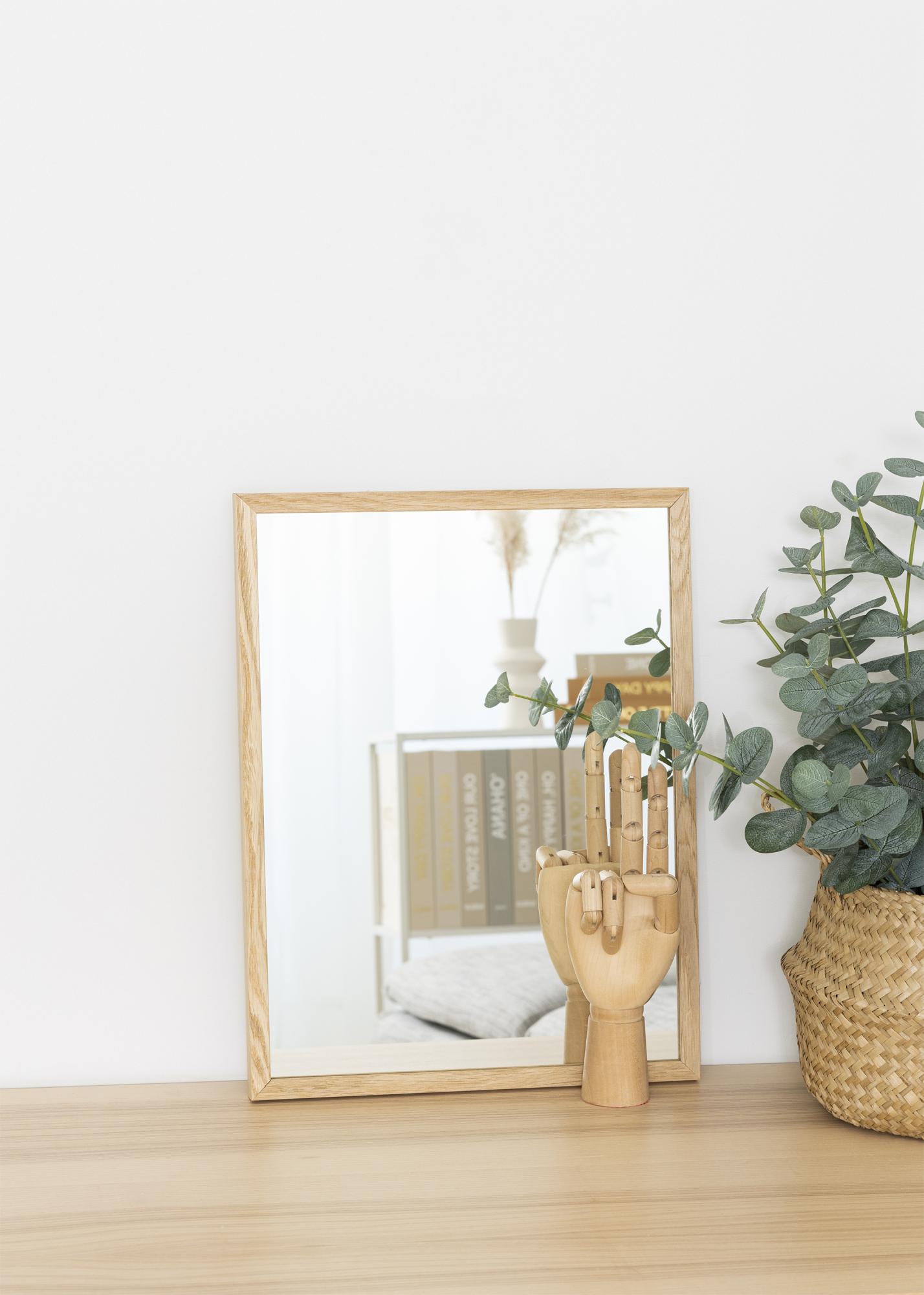 Este es un espejo de pared con un marco de madera fina, que se adapta perfectamente tanto a hogares modernos como a hogares más bohemios. El espejo es una muestra del mejor diseño escandinavo, con vidrio de espejo incoloro y un marco de madera clara con un perfil recto, que juntos brindan un aspecto luminoso y elegante.