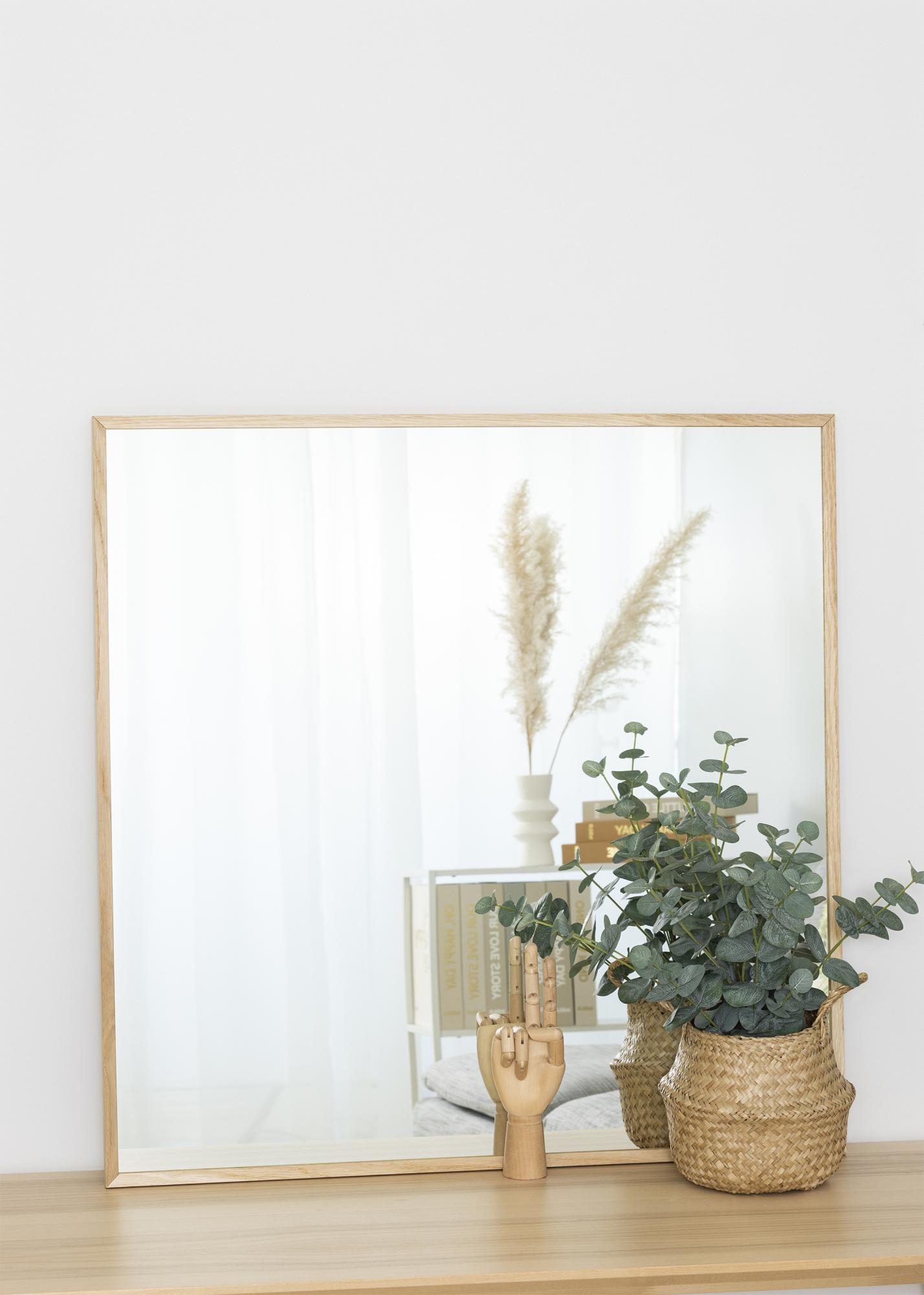 Este es un espejo de pared con un marco de madera fina, que se adapta perfectamente tanto a hogares modernos como a hogares más bohemios. El espejo es una muestra del mejor diseño escandinavo, con vidrio de espejo incoloro y un marco de madera clara con un perfil recto, que juntos brindan un aspecto luminoso y elegante.