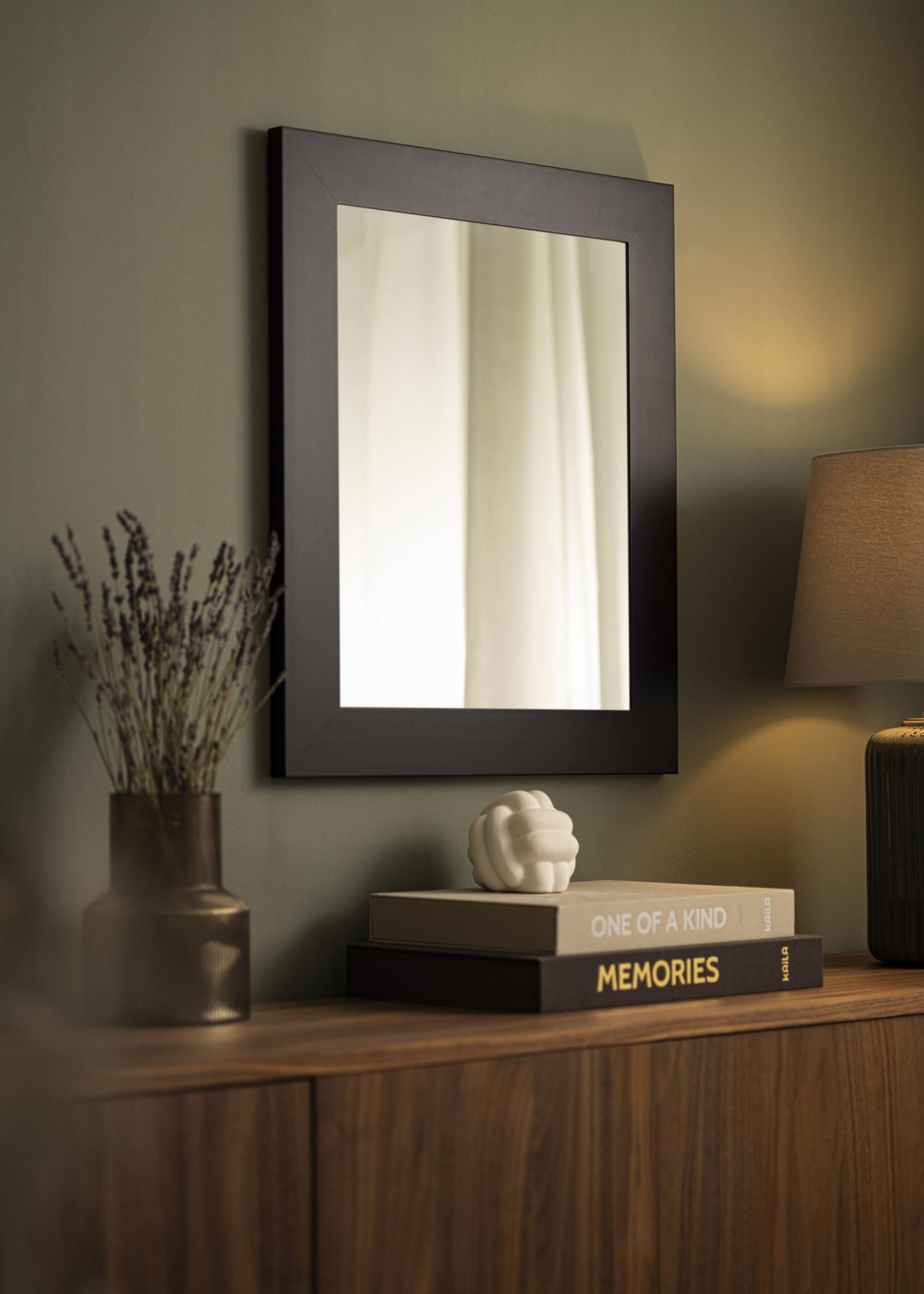 Este espejo tiene un elegante color negro que da una impresión moderna y elegante. El marco de 69 mm de ancho en madera de Ayo mate negro contribuye al aspecto sofisticado del espejo y lo convierte en un excelente complemento para estilos de decoración tanto clásicos como modernos. Con una profundidad de 22 mm, el espejo tiene una construcción robusta que asegura su durabilidad y estabilidad.