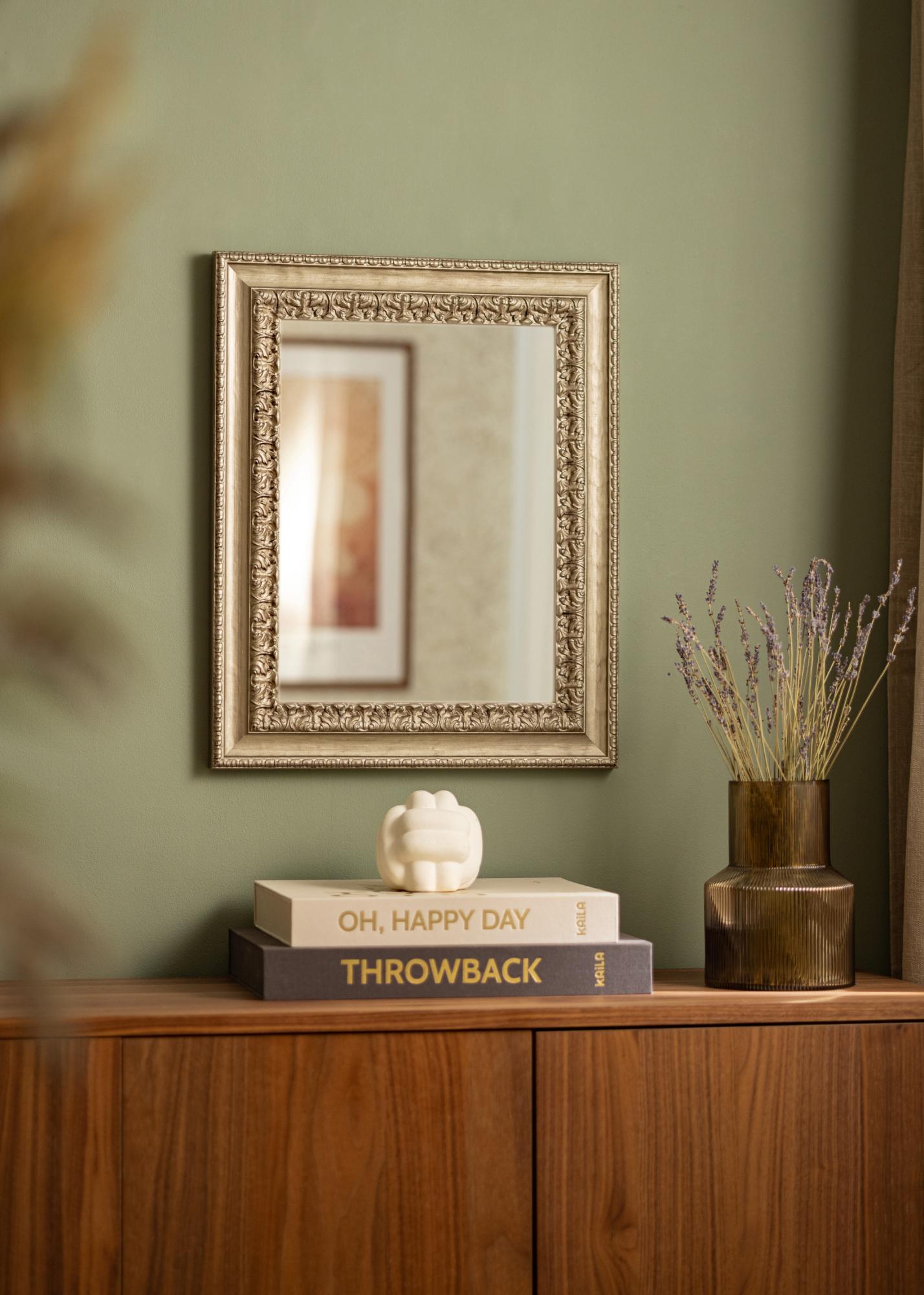 Ya sea que quieras usar el espejo en el pasillo, la sala de estar o el dormitorio, el Espejo Drottningholm Plata III dará al ambiente un toque sofisticado. La posibilidad de pedir el espejo en medidas personalizadas facilita adaptarlo al tamaño de tu pared y estilo de decoración. Deja que este hermoso espejo se convierta en una parte central de tu hogar y experimenta cómo mejora la atmósfera con su encanto clásico.