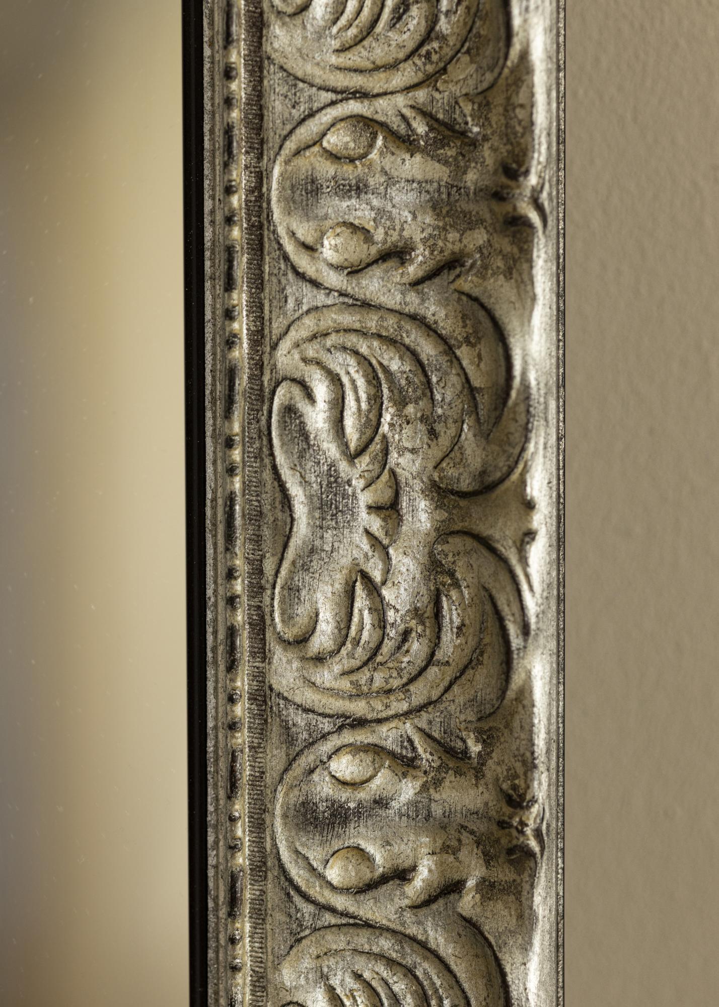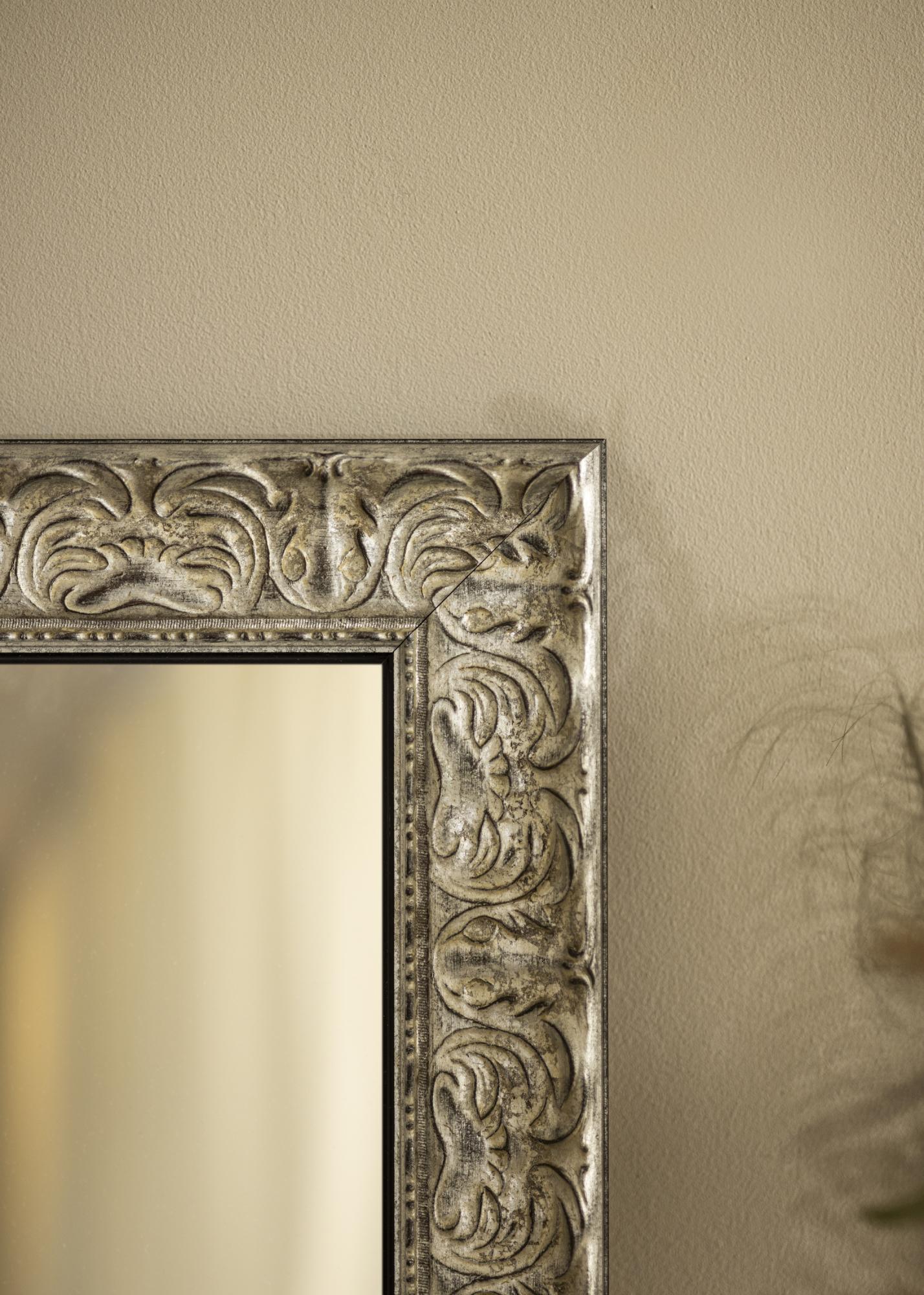 Espejo Durham Plata es un espejo hecho a medida que fabricamos para adaptarse a tus necesidades. Con su marco plateado y acabado antiguo, se convierte en un elemento elegante en cualquier habitación. El relieve ornamentado en el marco le da al espejo un carácter único y contribuye a una sensación rústica pero a la vez elegante.