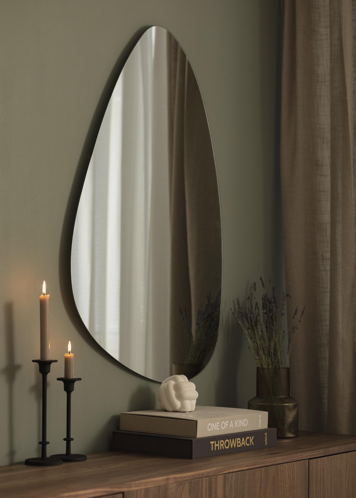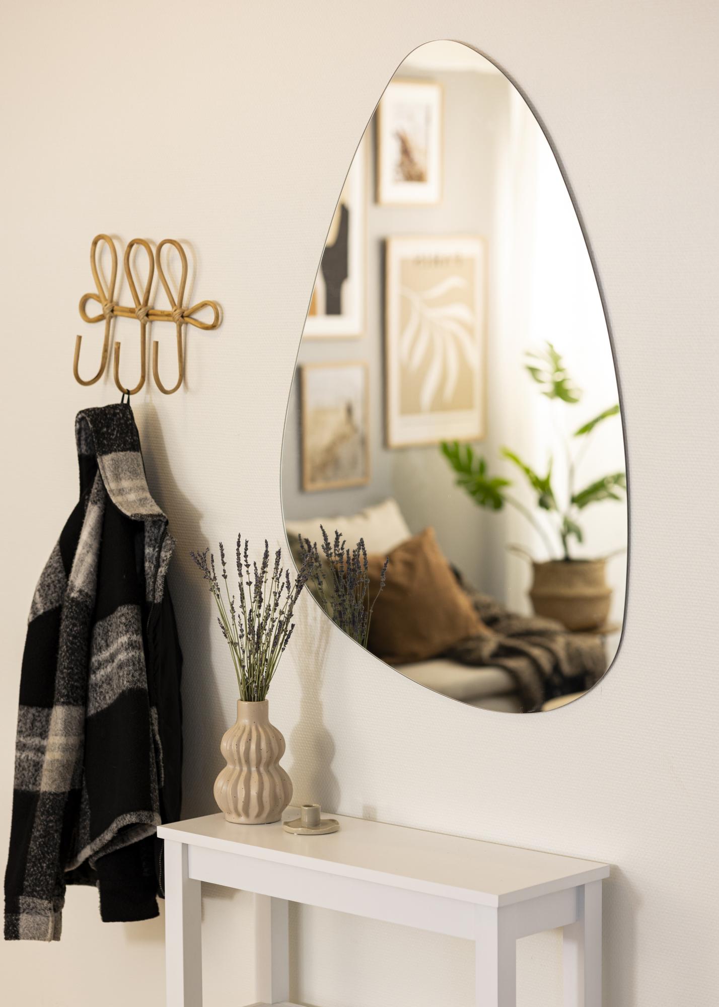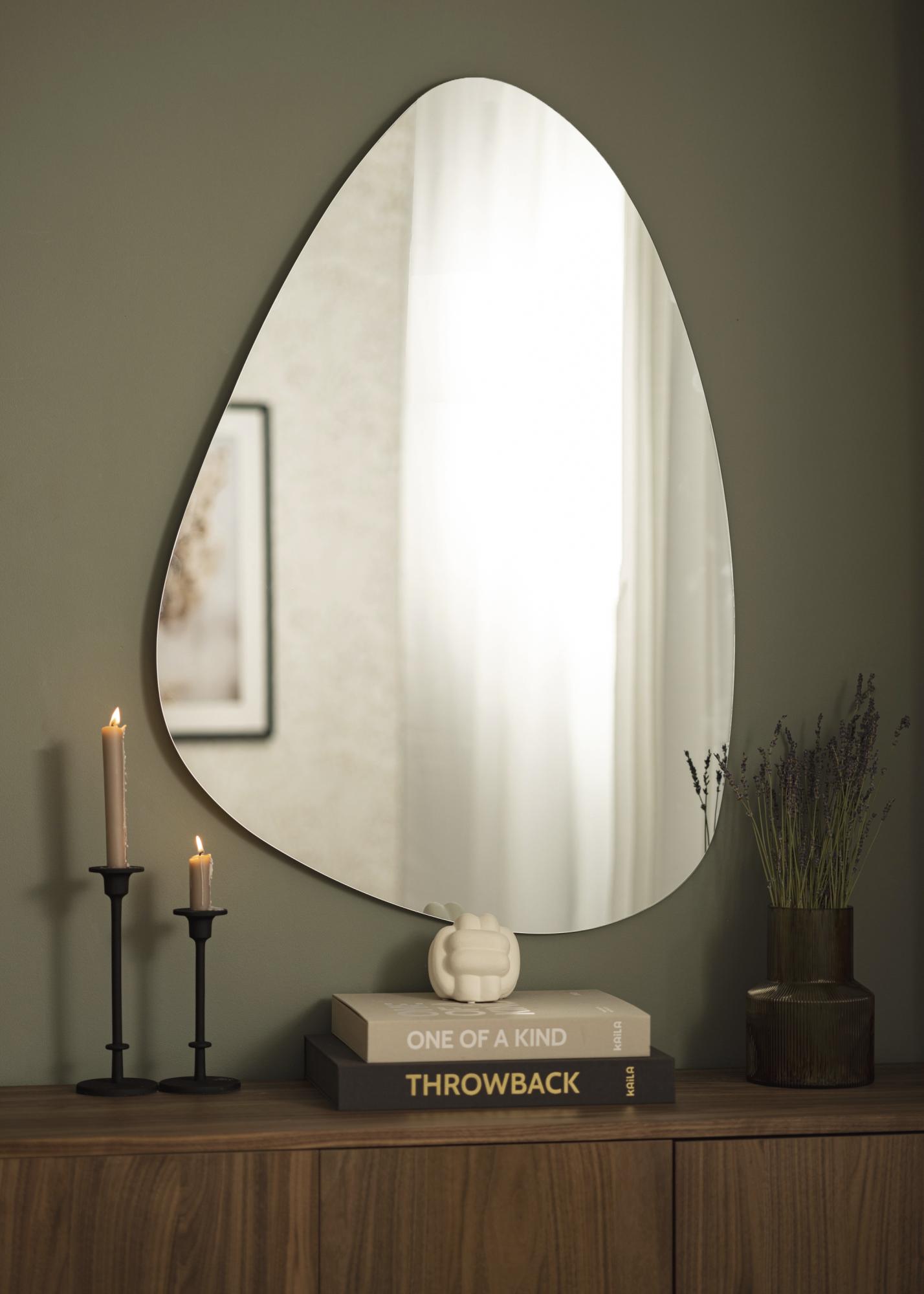 Este espejo es perfecto para aquellos que buscan un espejo elegante en estilo minimalista. La forma asimétrica se combina con un vidrio de espejo fino y bordes sin marco, lo que le da una apariencia muy elegante. En la parte pósterrior hay soportes de pared.