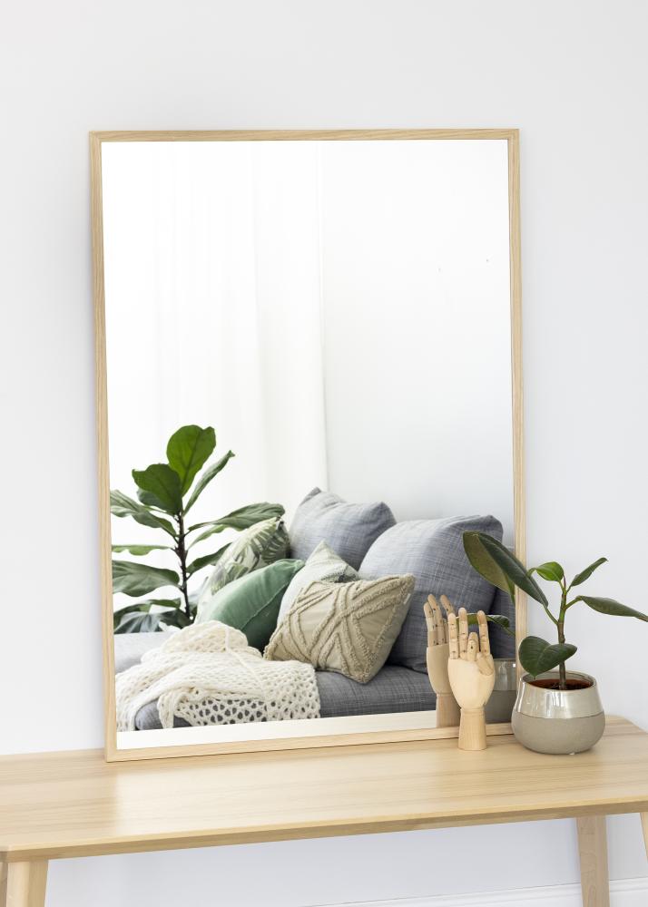 ¡Deja que este espejo con un marco de madera de roble de alta calidad adorne tu hogar! El marco está hecho de listones de pino con chapa de roble auténtico encima. La superficie está sin tratar, lo que significa que puedes elegir pintar o teñir el marco como desees, o puedes dejar que la estructura rústica y elegante del roble se mantenga. Las posibilidades de variación hacen que este espejo se adapte a cualquier hogar y se convierta en un detalle atemporal. Este espejo de pared mide 70x100 cm y tiene un cristal de espejo sin color. El marco tiene un ancho de 17 mm y una profundidad de 22,5 mm. El espejo tiene soportes de pared.