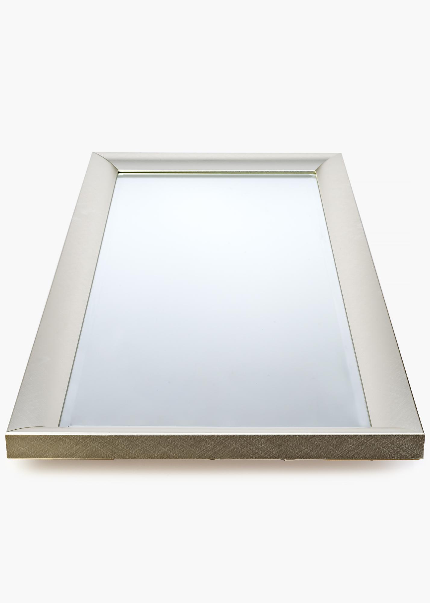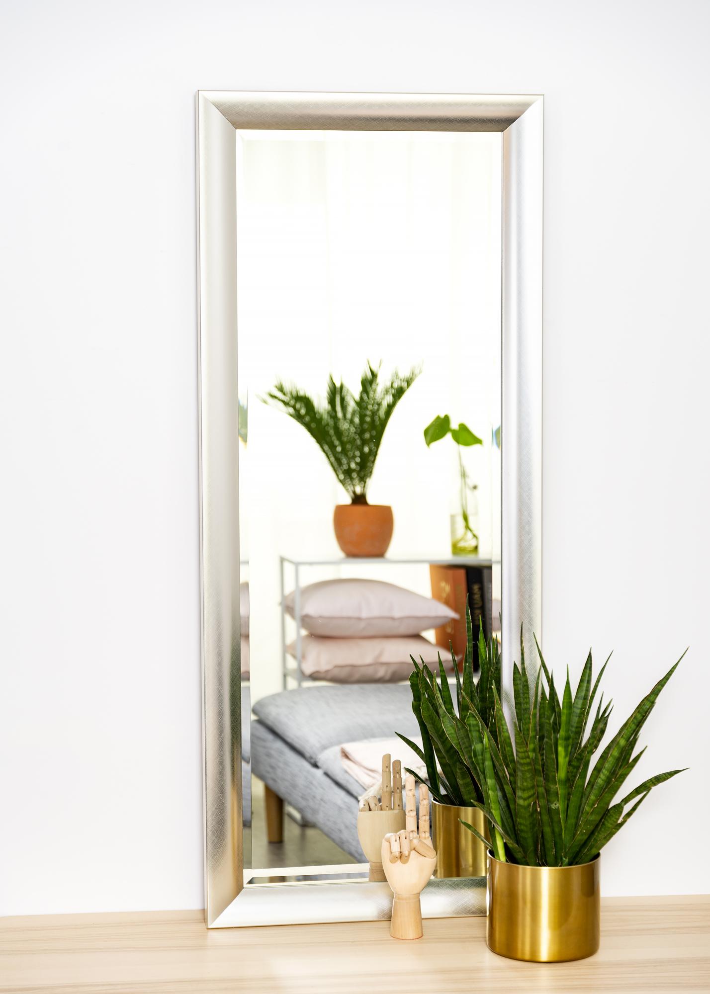 Agregue un toque de lujo adicional a su interior con este elegante espejo. La superficie del marco tiene un diseño simétrico cepillado que, junto con los bordes de vidrio biselados, crea una sensación exclusiva. Elige entre las medidas de 50x130 cm y 60x150 cm.