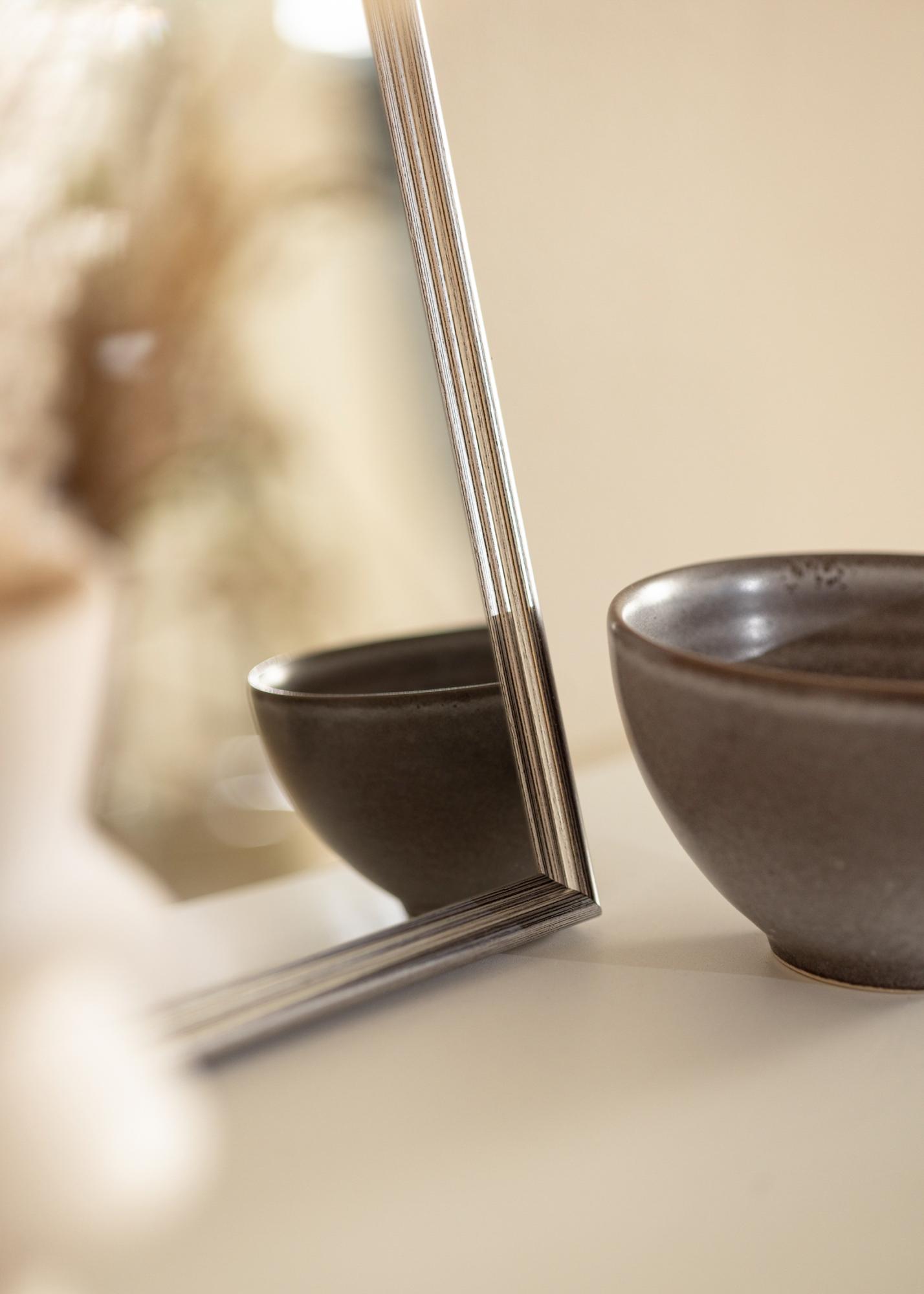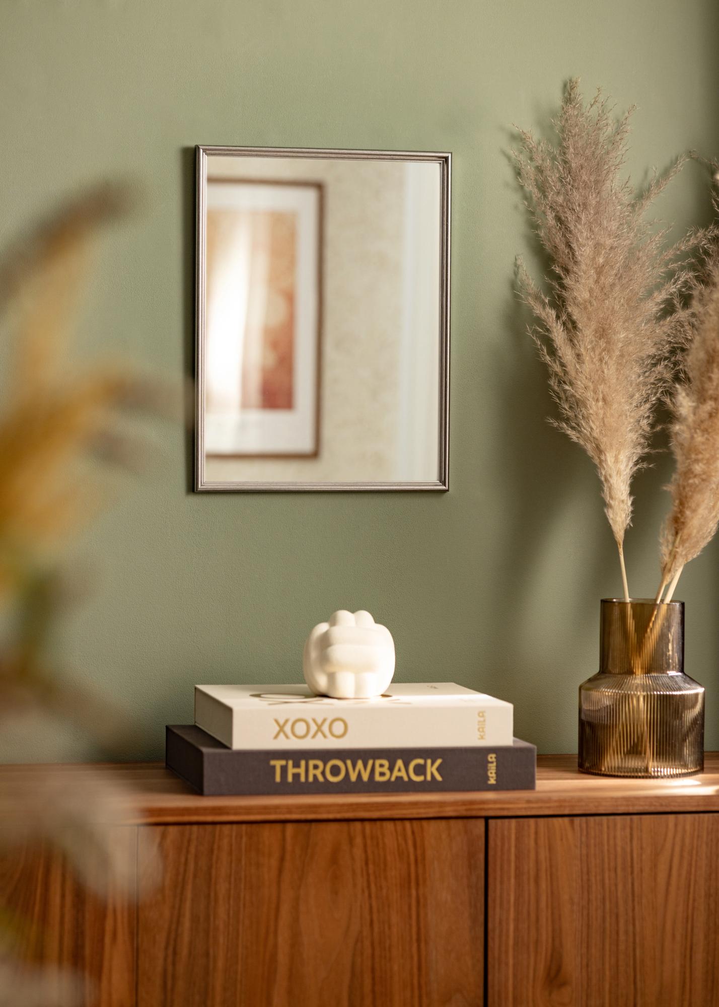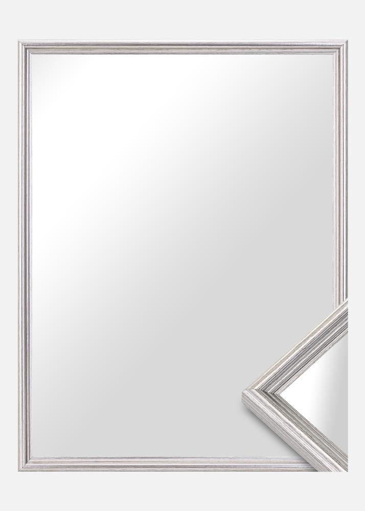 ¡Vamos a fabricar un espejo que se ajuste perfectamente a tu hogar! Este elegante espejo se fabrica según tus propias medidas para asegurarte de que sea el correcto. El espejo tiene un marco clásico perfilado que está pintado con un color plateado brillante. Combina muy bien con componentes de decoración en negro, blanco y lila, por ejemplo.