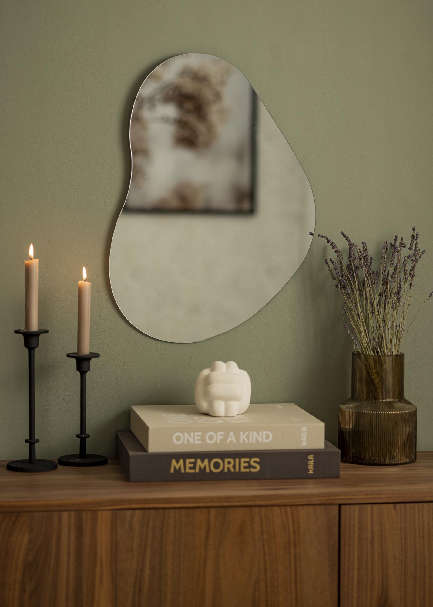 Mellow Cloud es el espejo para aquellos que deseasn tener un espejo neutral en una forma hermosa. El elegante espejo de 40x55 cm tiene un vidrio de espejo fino y una forma ondulante elegante. La sensación elegante y delicada se refuerza aún más al no tener marco. En la parte pósterrior hay soportes de pared.