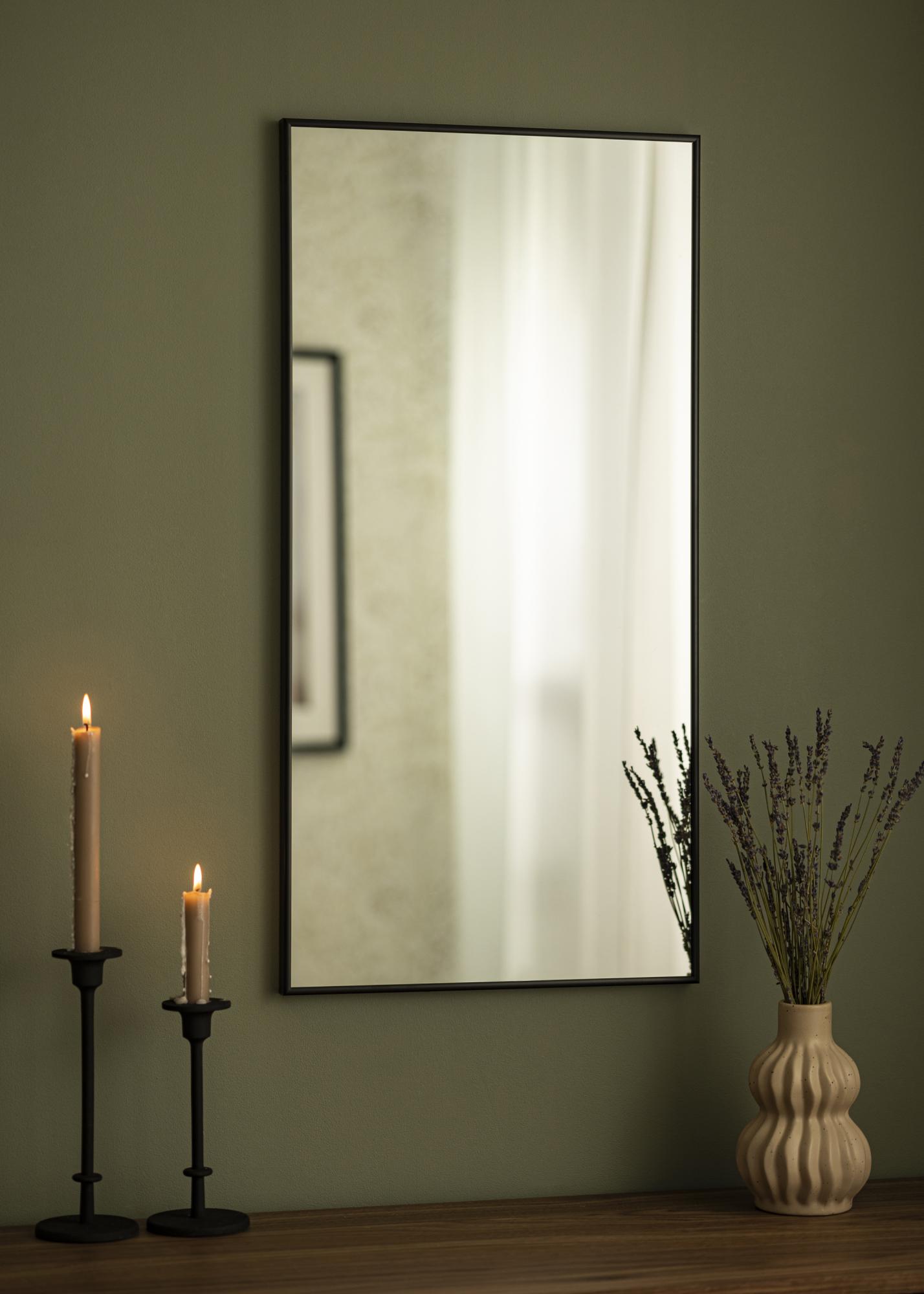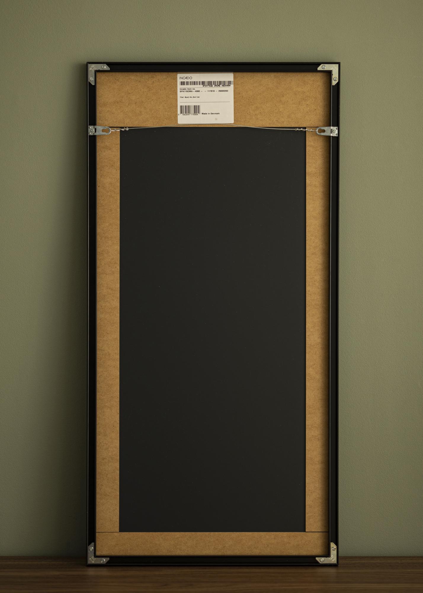 Este espejo está enmarcado con un sofisticado marco de aluminio negro que agrega un toque moderno a tu decoración. No es solo un objeto práctico, sino también un detalle decorativo que complementa tanto estilos clásicos como contemporáneos.