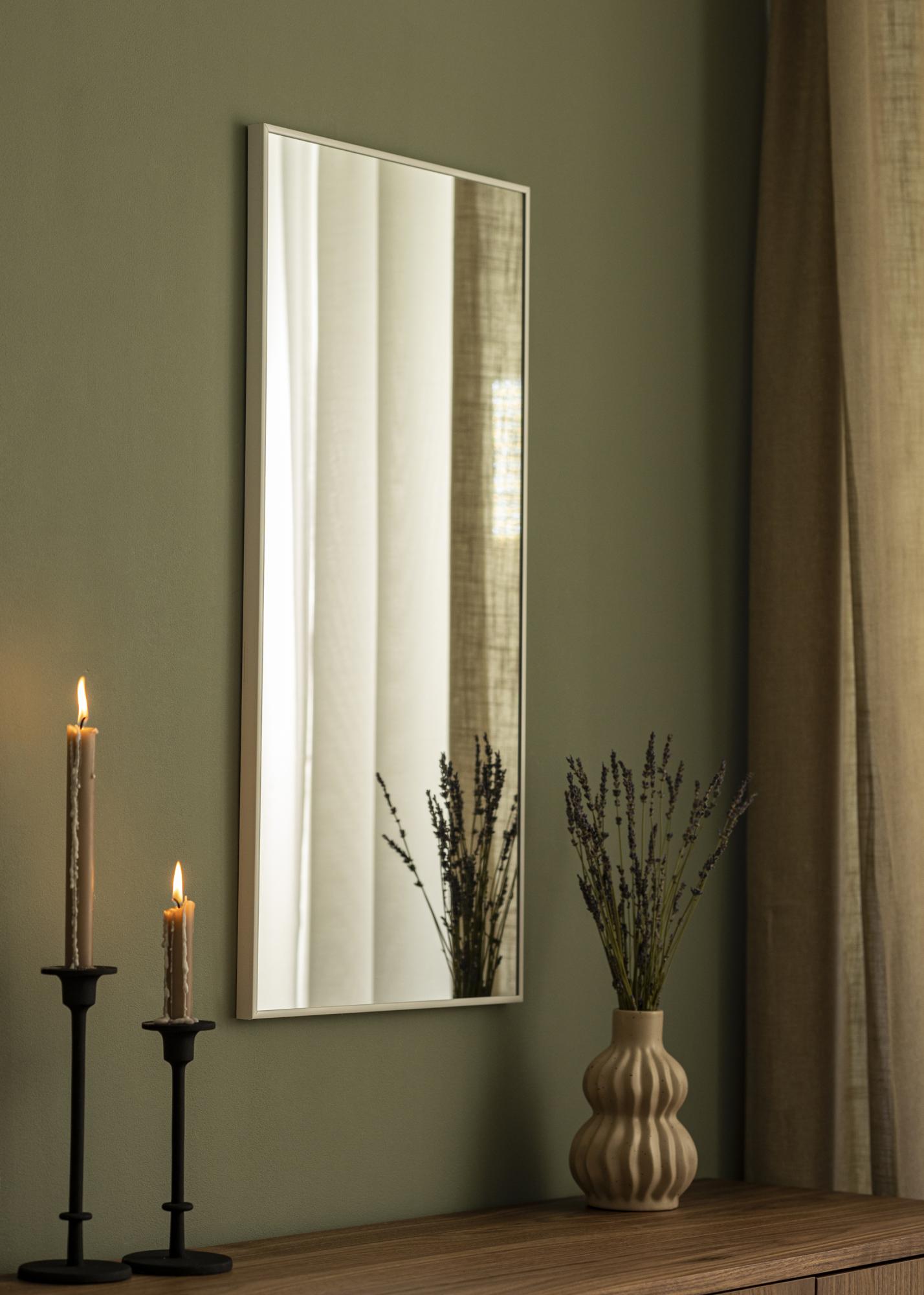 Crea una sensación de espacio y luz en tu hogar con este espejo de diseño elegante. Con sus dimensiones de 40,5x80,5 cm, es perfecto para crear una ilusión de un espacio más grande o como un detalle práctico en el pasillo. El marco de aluminio blanco aporta un toque moderno mientras mantiene el diseño limpio y atemporal.