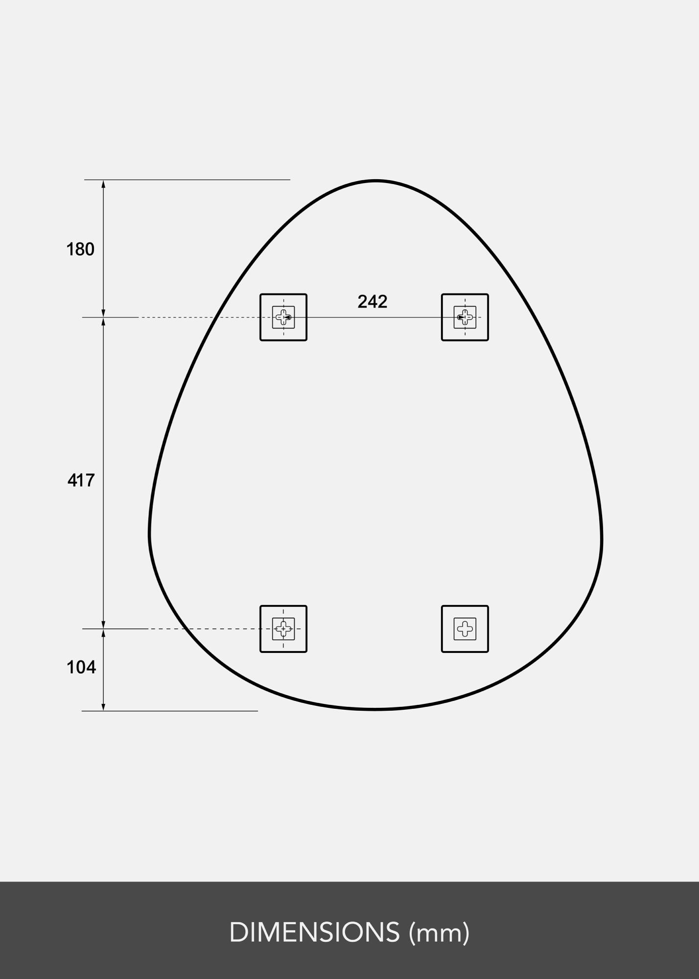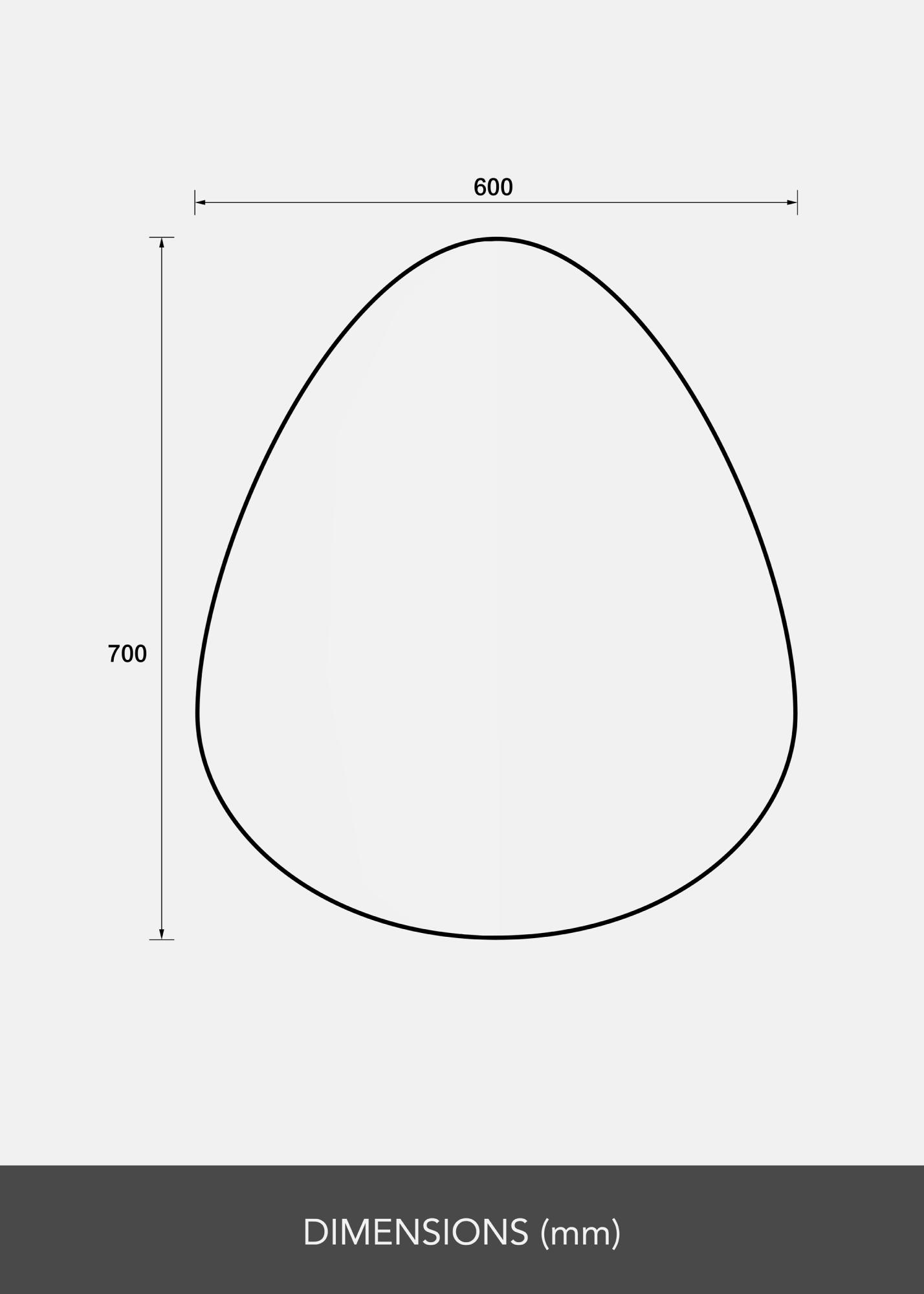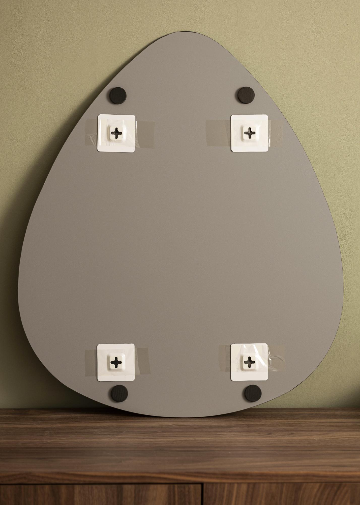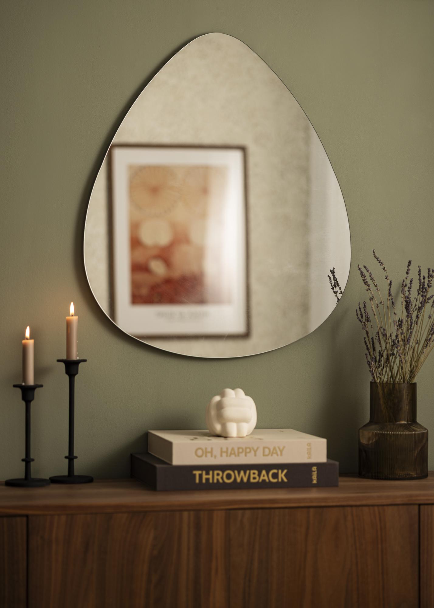 El diseño del espejo es moderno y atemporal, con una parte superior amplia, estrecha y redondeada que crea una silueta distintiva en forma de lágrima. Esta forma aporta suavidad y una sensación orgánica a la habitación, lo que hace que el espejo se adapte a una variedad de estilos de decoración.