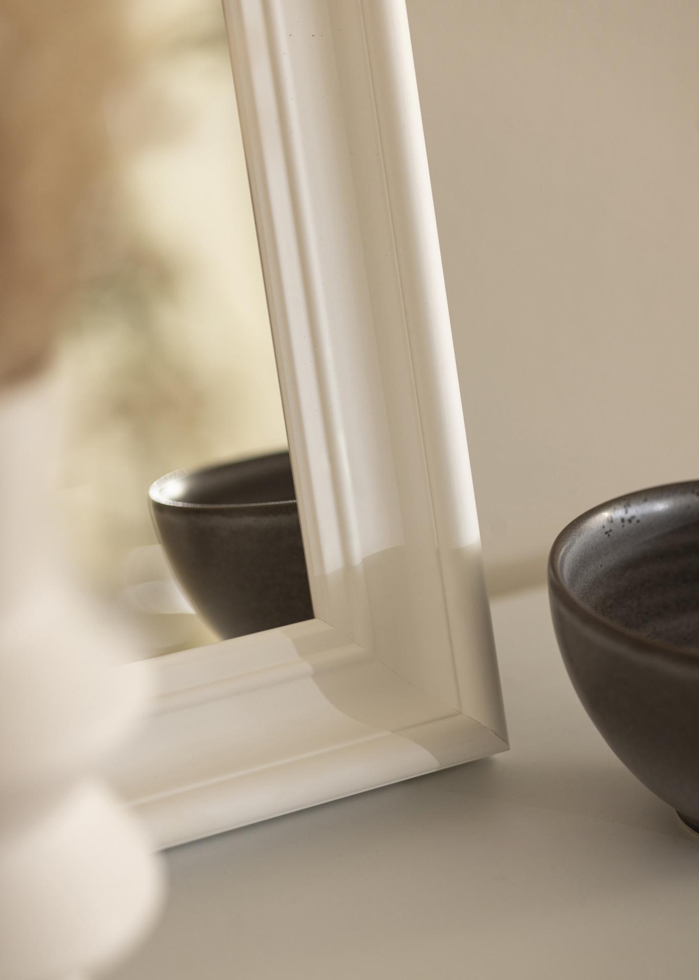 Mora es uno de nuestros espejos más exclusivos con un marco de madera amplio y hermoso en blanco que seguramente llamará la atención.