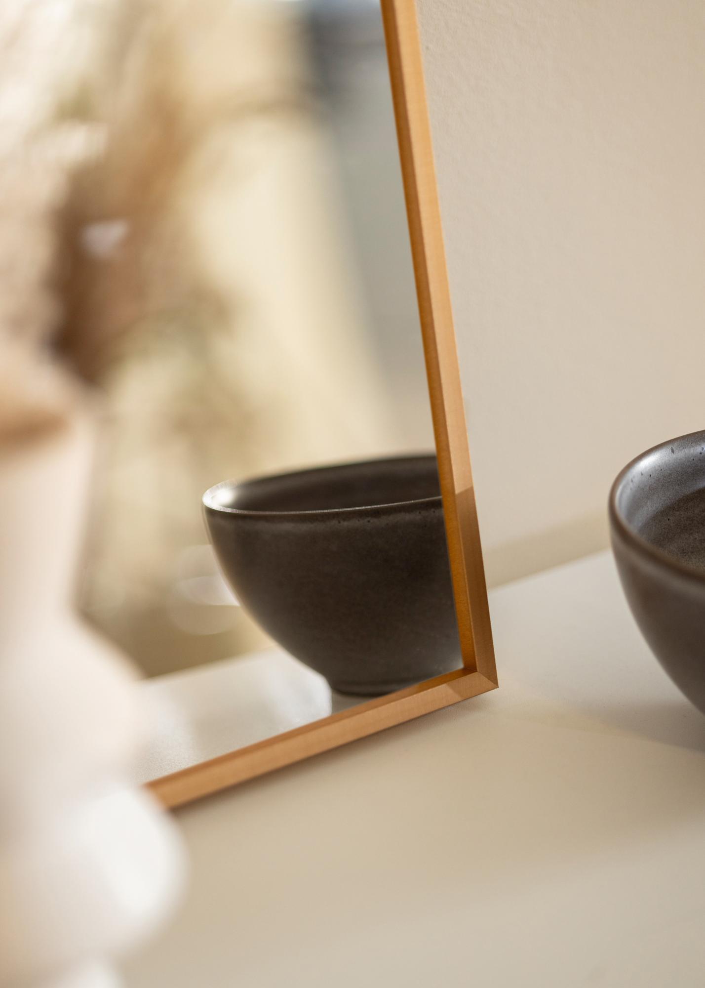 Espejo Nielsen Premium Alpha Cepillado Ámbar es un espejo a medida que fabricamos para satisfacer tus necesidades. Con su metal color ámbar y su perfil delgado y elegante, se convierte en un elemento sofisticado en cualquier habitación. La superficie cepillada le da al espejo un brillo suave y sutiles cambios de color que capturan la luz de manera hermosa.
