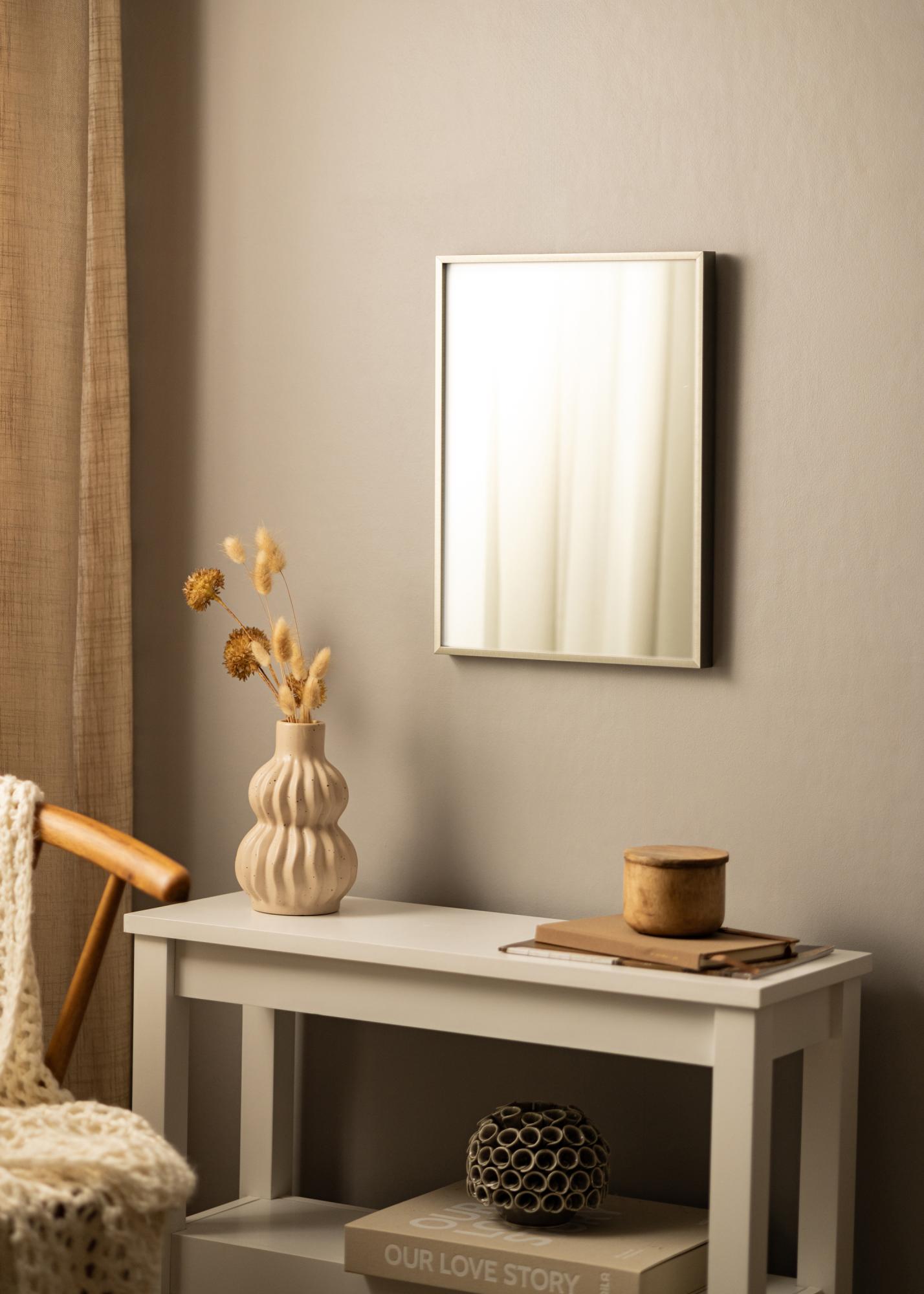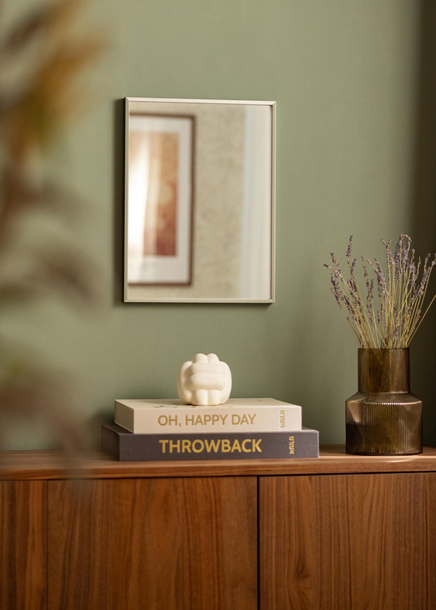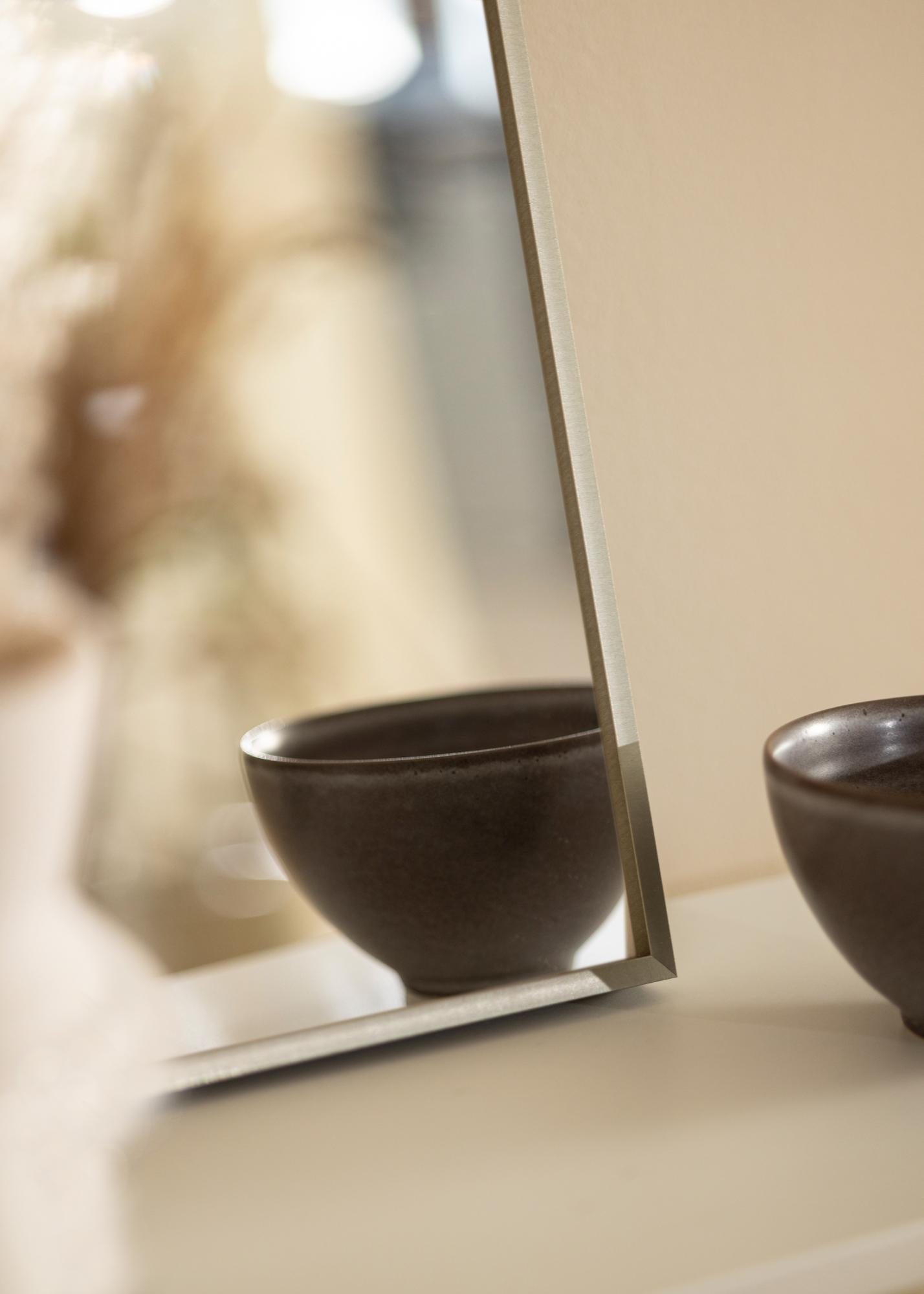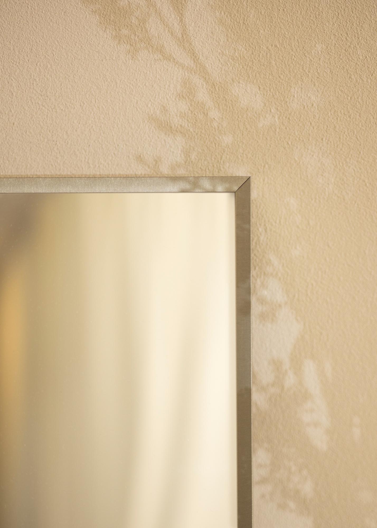 Este espejo tiene un hermoso color plateado que ofrece una impresión atemporal y sofisticada. El marco mide 7,8 mm de ancho y está fabricado de aluminio, lo que le proporciona al espejo una construcción robusta y duradera mientras mantiene una sensación ligera y manejable. La profundidad de 25,9 mm hace que el espejo quede firme contra la pared y le da un aspecto elegante.
