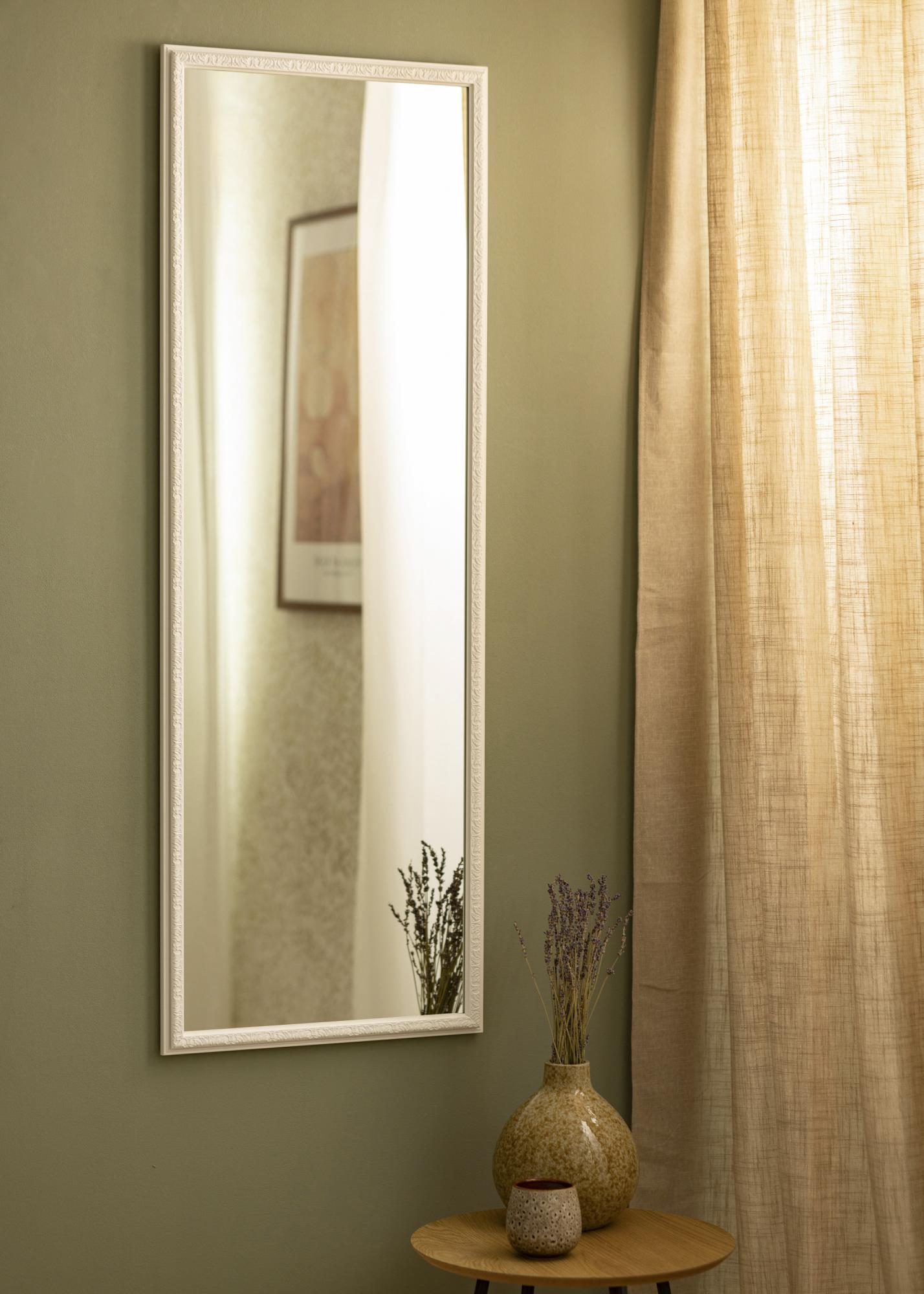 Este espejo de pared es un elegante detalle decorativo que refleja hermosamente la luz de todas las fuentes de luz de la habitación. El marco blanco brinda una impresión clara y fresca, que se complementa perfectamente con el perfil decorativo y los hermosos patrones del marco.