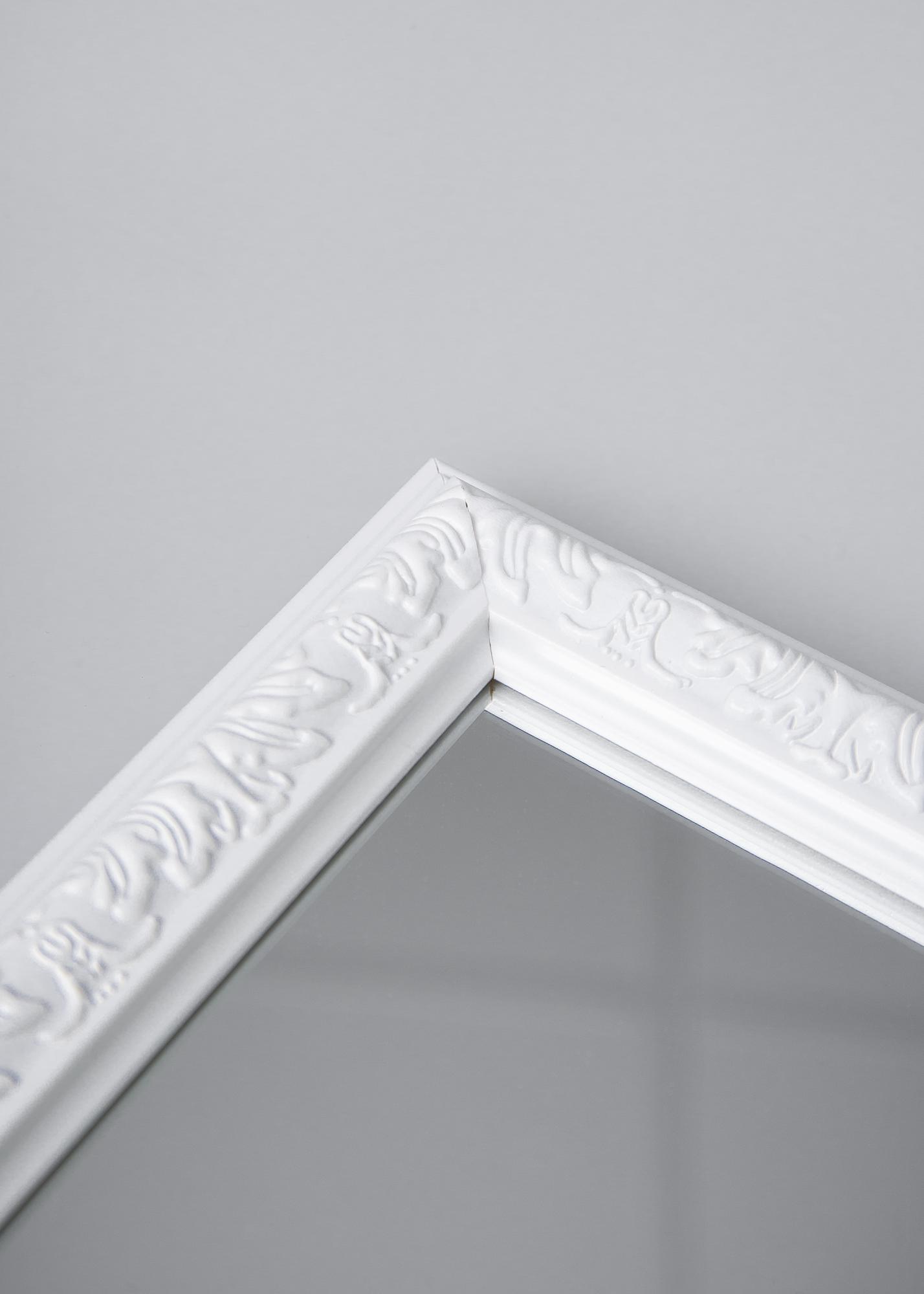 Este espejo de pared es un elegante detalle decorativo que refleja hermosamente la luz de todas las fuentes de luz de la habitación. El marco blanco brinda una impresión clara y fresca, que se complementa perfectamente con el perfil decorativo y los hermosos patrones del marco.