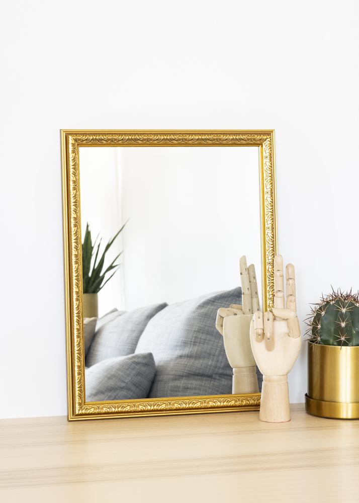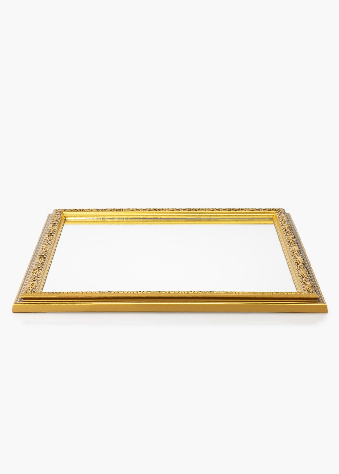 Iniciar el selector de marcos »Nostalgia Dorado es una serie de espejos de pared. El marco está ricamente decorado con símbolos irregulares que dan una impresión un poco misteriosa.
