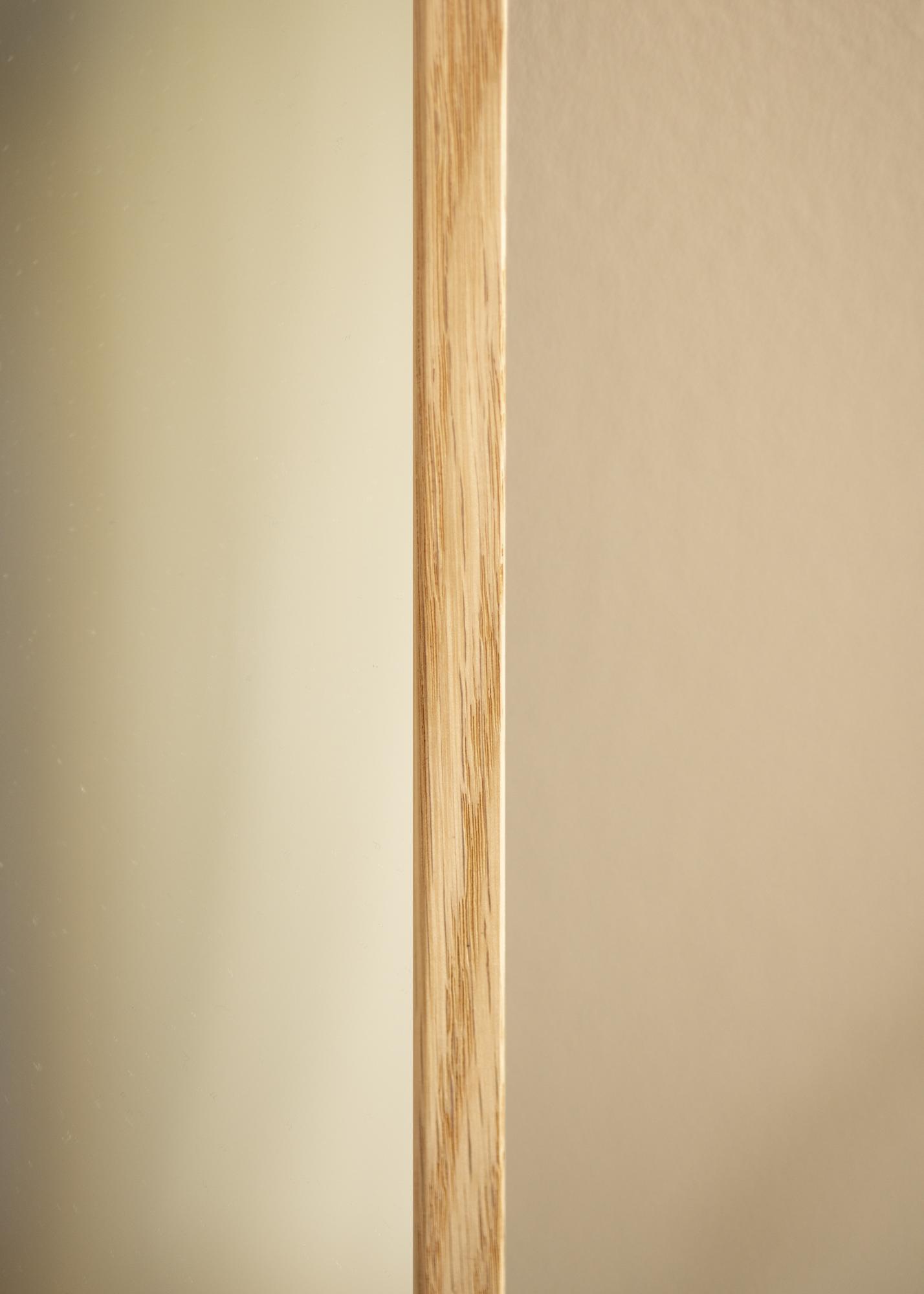El marco de madera de 12 mm de ancho brinda al espejo una elegante estructura sin dominar el espacio. El diseño sutil permite que el espejo se integre en la mayoría de los entornos mientras aporta una sensación de amplitud y luz. Con una profundidad de 18 mm, el espejo tiene una construcción robusta que garantiza que cuelgue de manera estable en la pared.