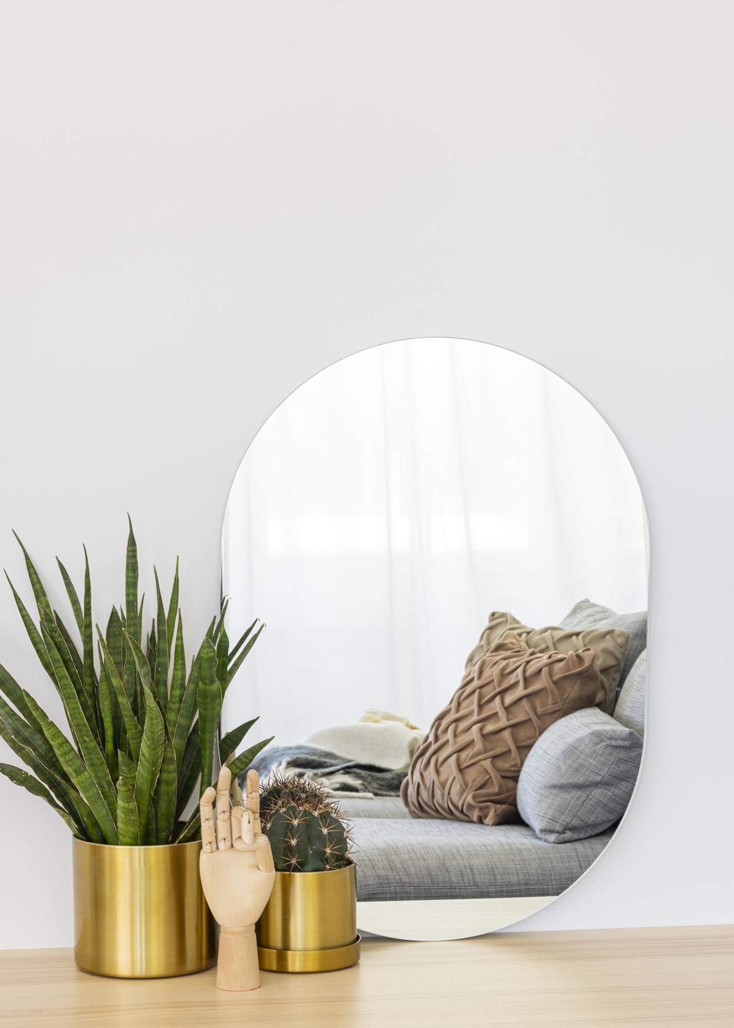 Espejo sin borde con forma ovalada. Detalle de decoración perfecto para la sala de estar o como un espejo más pequeño para el recibidor.