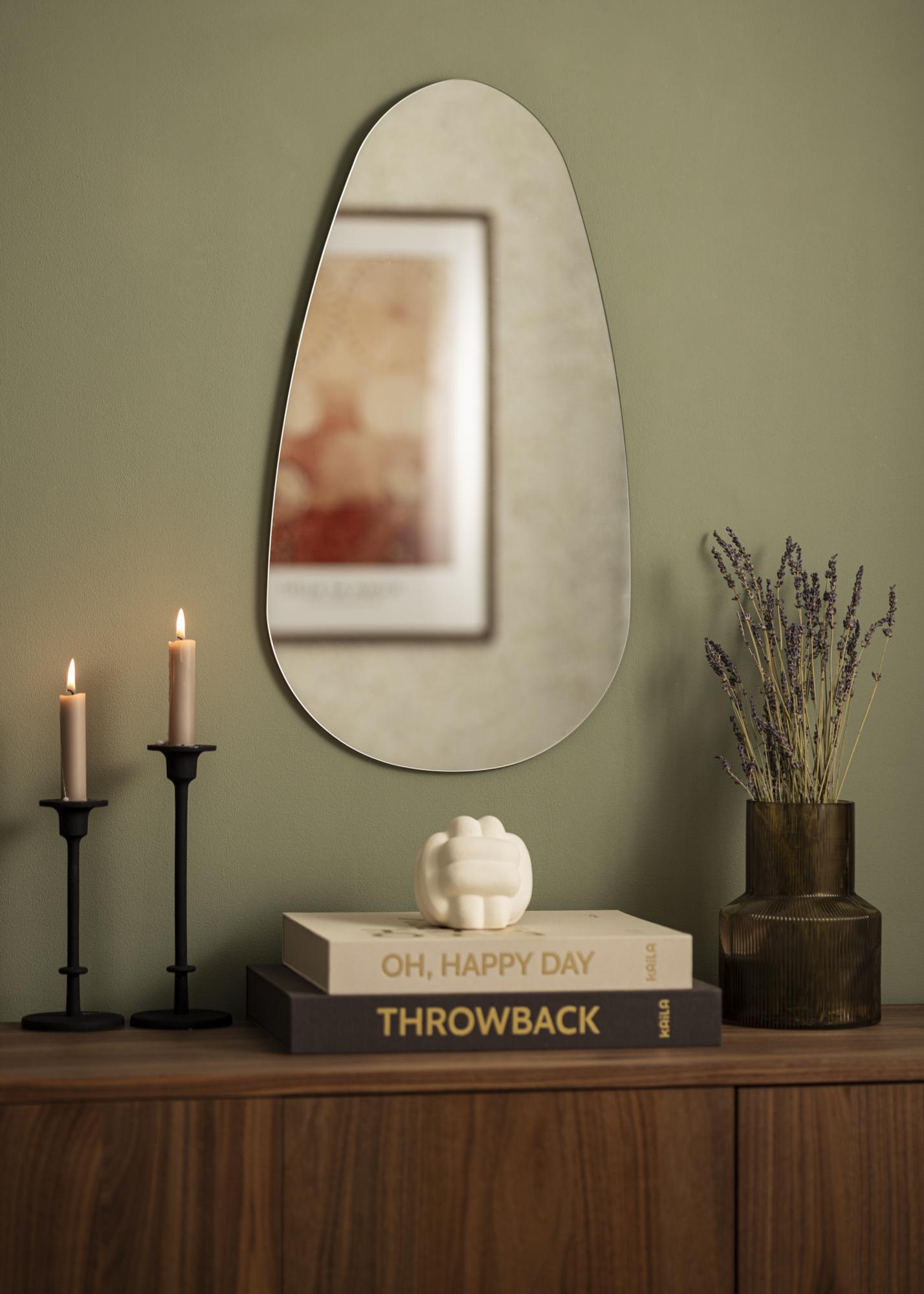 Este espejo no es solo un detalle práctico sino también una pieza decorativa que complementará tu decoración. Su elegante silueta en forma de gota se extiende suavemente hacia arriba, creando una sensación de calma y belleza en la habitación. Está diseñado para ser colgado en posición vertical u horizontal, lo que te brinda la flexibilidad para adaptarlo a tu espacio y estilo personal.