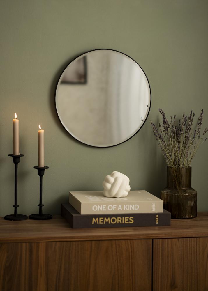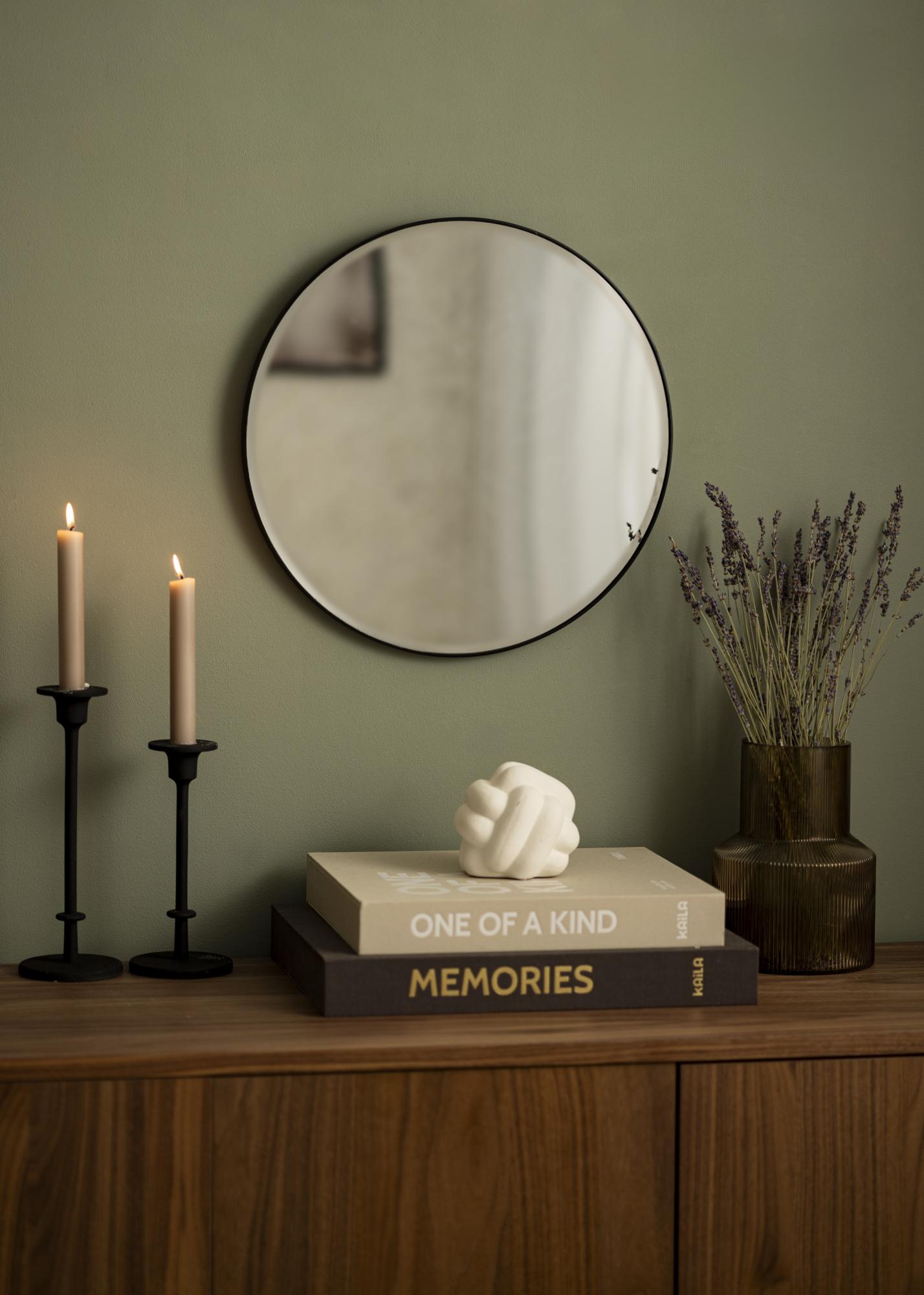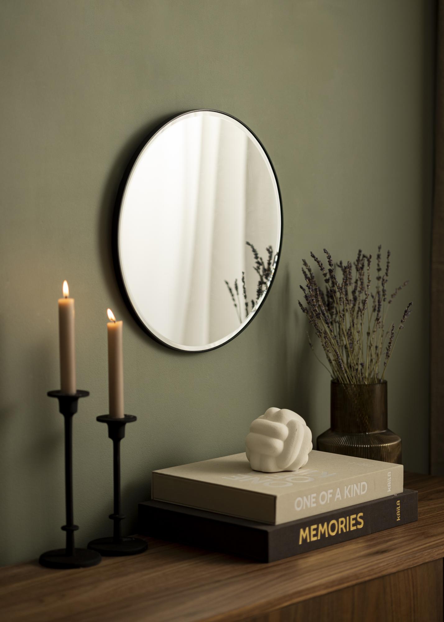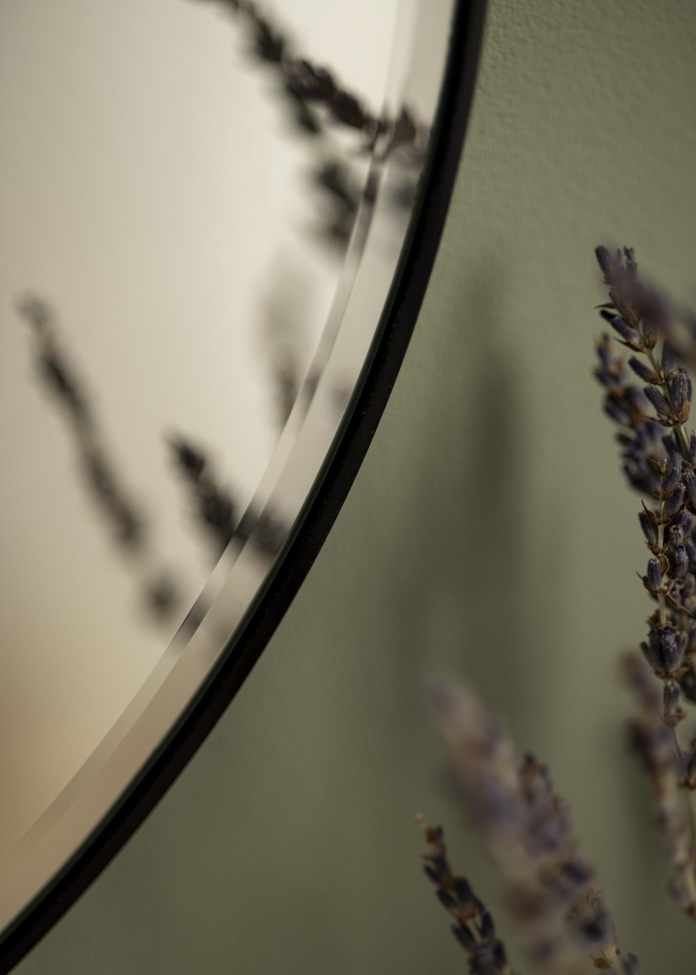 Este espejo redondo es de la marca danesa Incado y tiene un diseño moderno con una sensación exclusiva. Esto se debe a la feliz combinación del marco negro moderno y el elegante borde facetado del espejo. Este diseño elegante también hace que este espejo se adapte a la mayoría de los hogares y estilos de decoración.