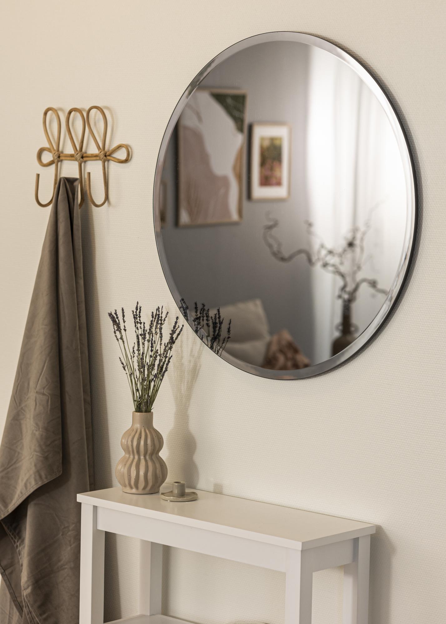 Este espejo redondo de la marca danesa Incado no solo es moderno y elegante, sino que también es el tipo de espejo que se puede tener toda la vida sin cansarse de él. Tiene un cristal de espejo coloreado en un elegante color gris y el borde facetado hace que la habitación en la que se coloca transmita un estilo lujoso al instante.