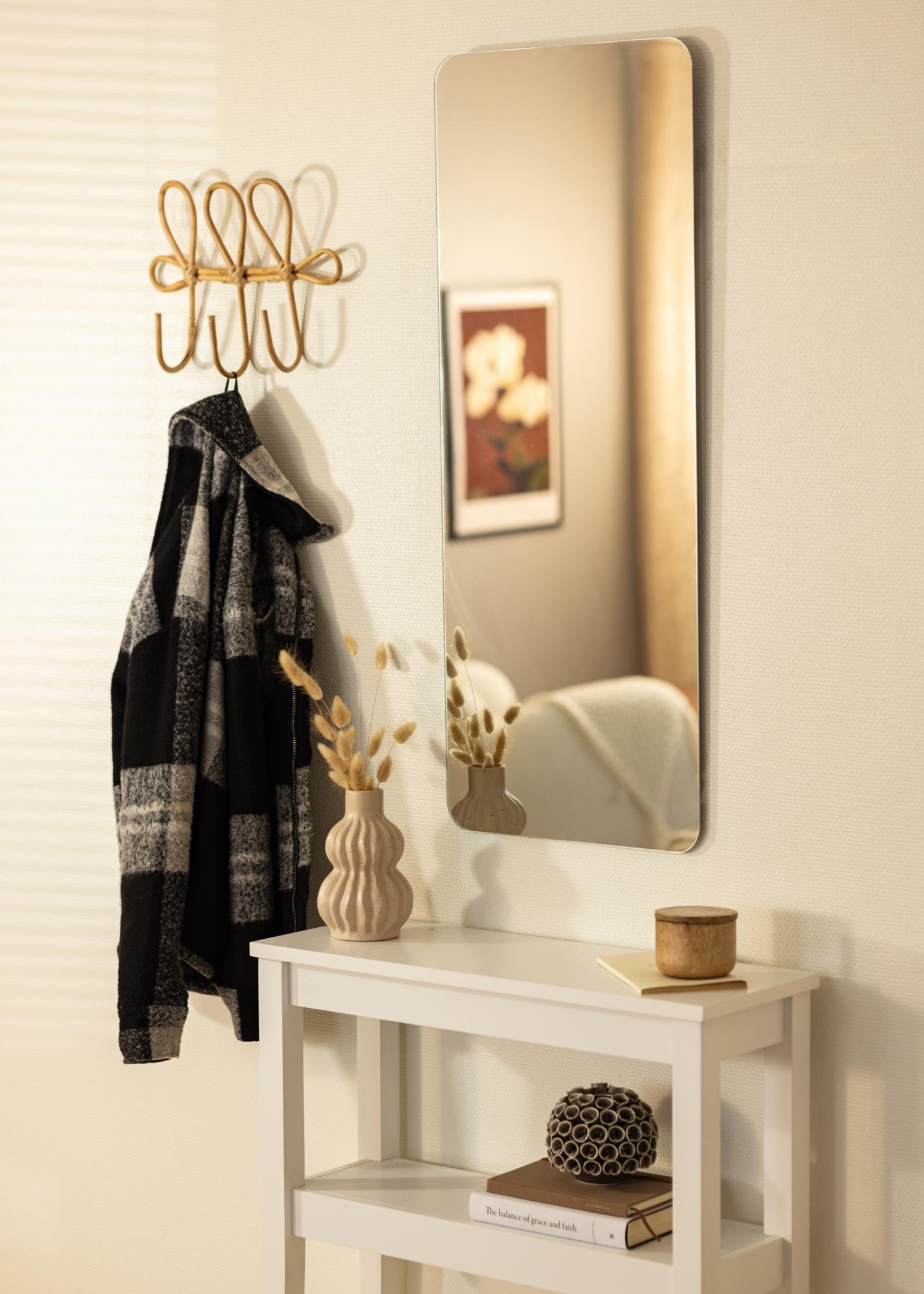 Con su diseño limpio y sus opciones de montaje flexibles, este espejo es la solución ideal para aquellos que buscan un detalle decorativo funcional y estético. Se adapta perfectamente a una decoración minimalista, pero también puede ser un contraste discreto en una habitación más clásica o colorida. Cualquiera que sea su ubicación, el espejo reflejará tu buen gusto y sentido del diseño.