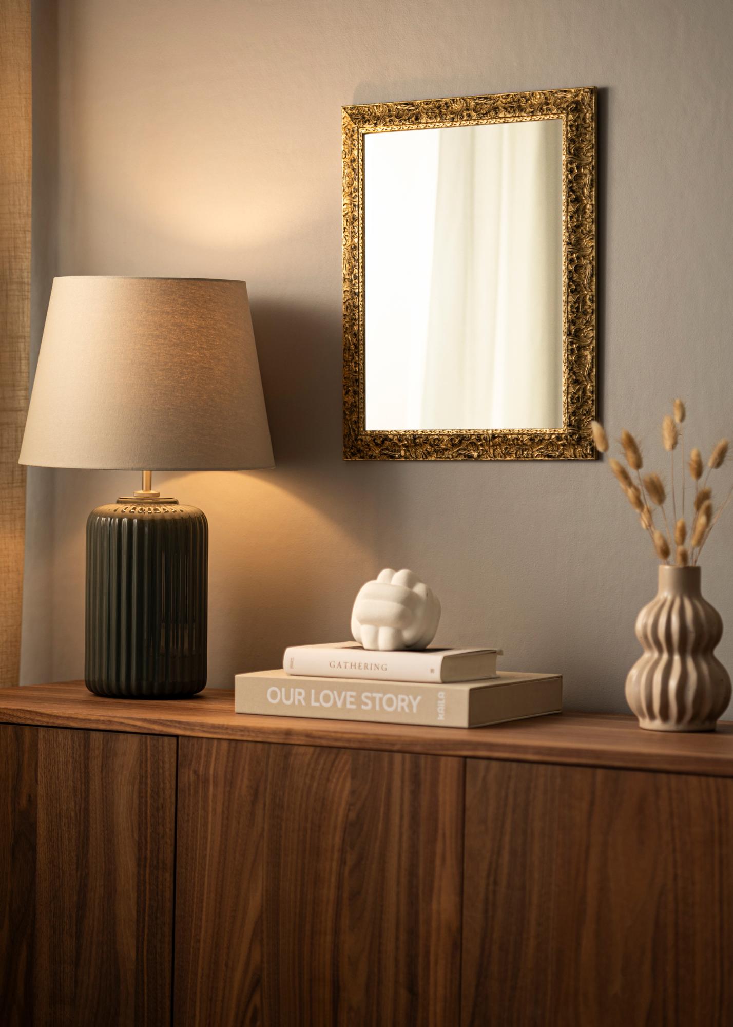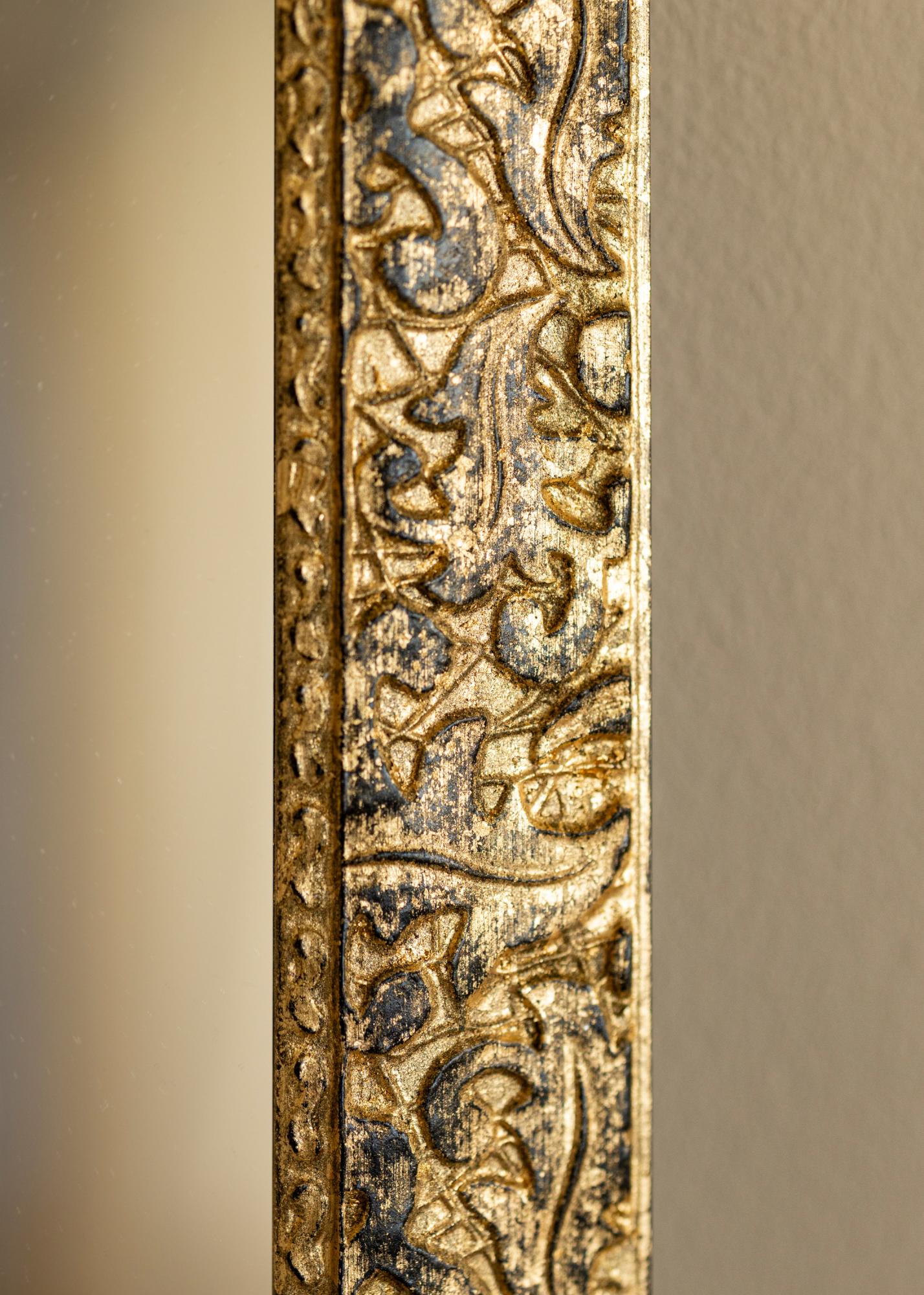 "Ralph Dorado" es un elegante espejo fabricado en Italia de la más alta calidad. Con su perfil ricamente decorado, este es un hermoso espejo que se adapta tanto al baño como al recibidor.