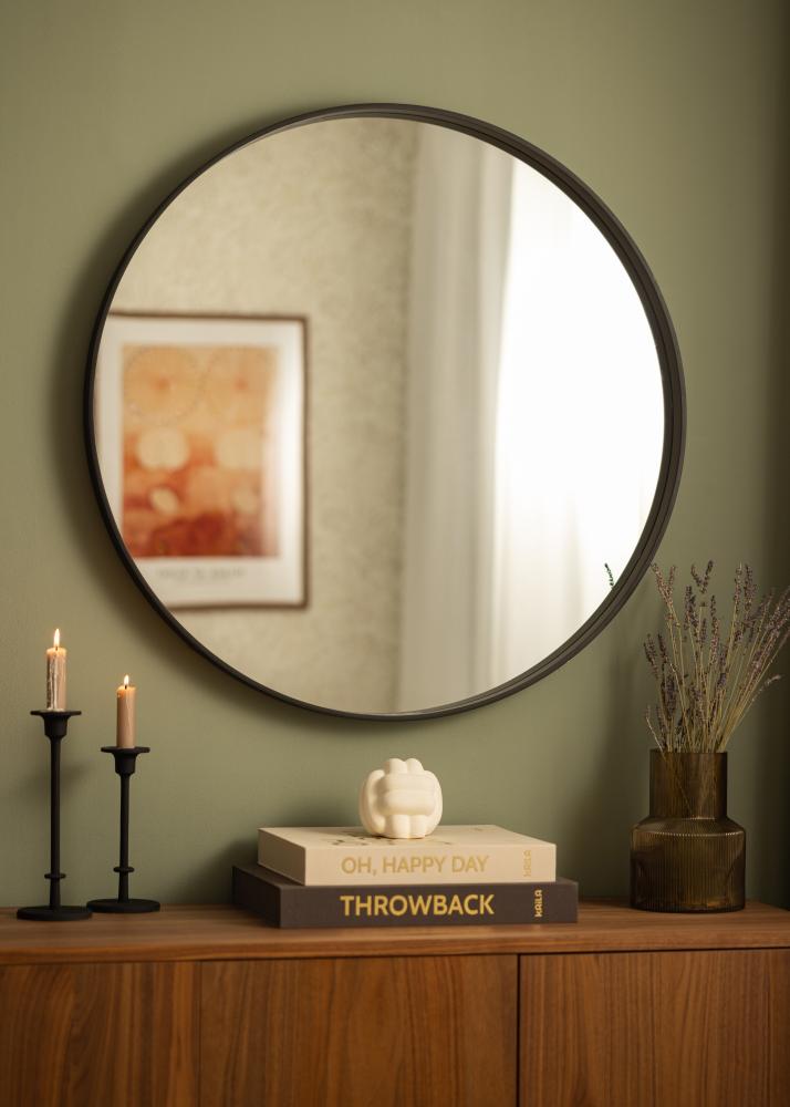 Descubre la elegante sencillez de nuestro espejo redondo, un detalle de decoración atemporal que encaja perfectamente en cualquier hogar. Este moderno espejo redondo se destaca por su marco negro, que le da un aspecto fresco y contemporáneo a la habitación. Su diseño minimalista le permite integrarse en distintos estilos de decoración, desde el escandinavo hasta el industrial