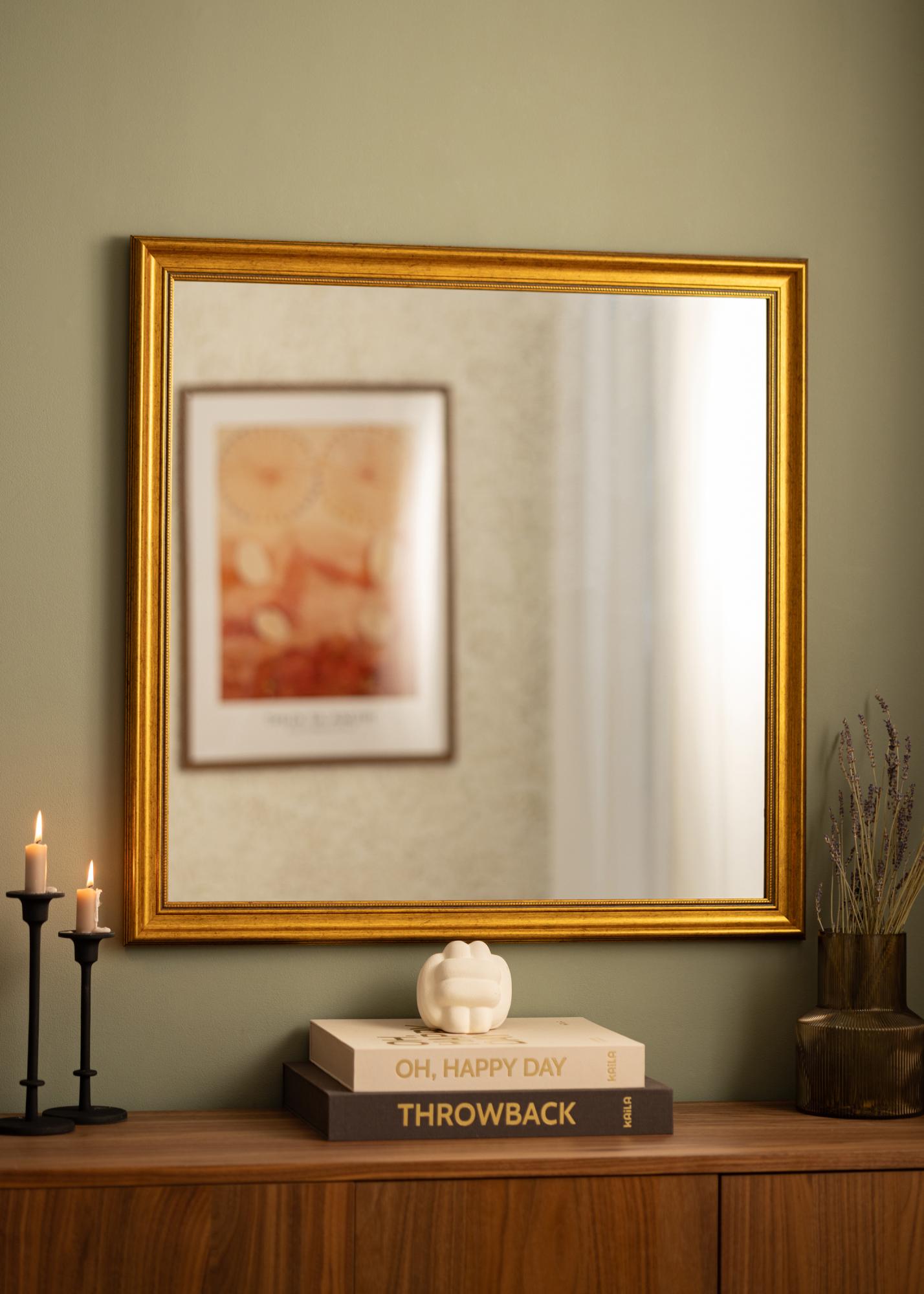 Rococó es una serie de espejos con un hermoso marco en elegante estilo rococó. El marco es de color dorado, lo que le da al espejo una gran sensación de lujo. El diseño decorativo y lujoso hace que el espejo sea un detalle de decoración perfecto en el recibidor, dormitorio o sala de estar. El espejo está disponible en diferentes tamaños, para que puedas elegir el que mejor se adapte a tu hogar. Este espejo mide 50x70 cm.