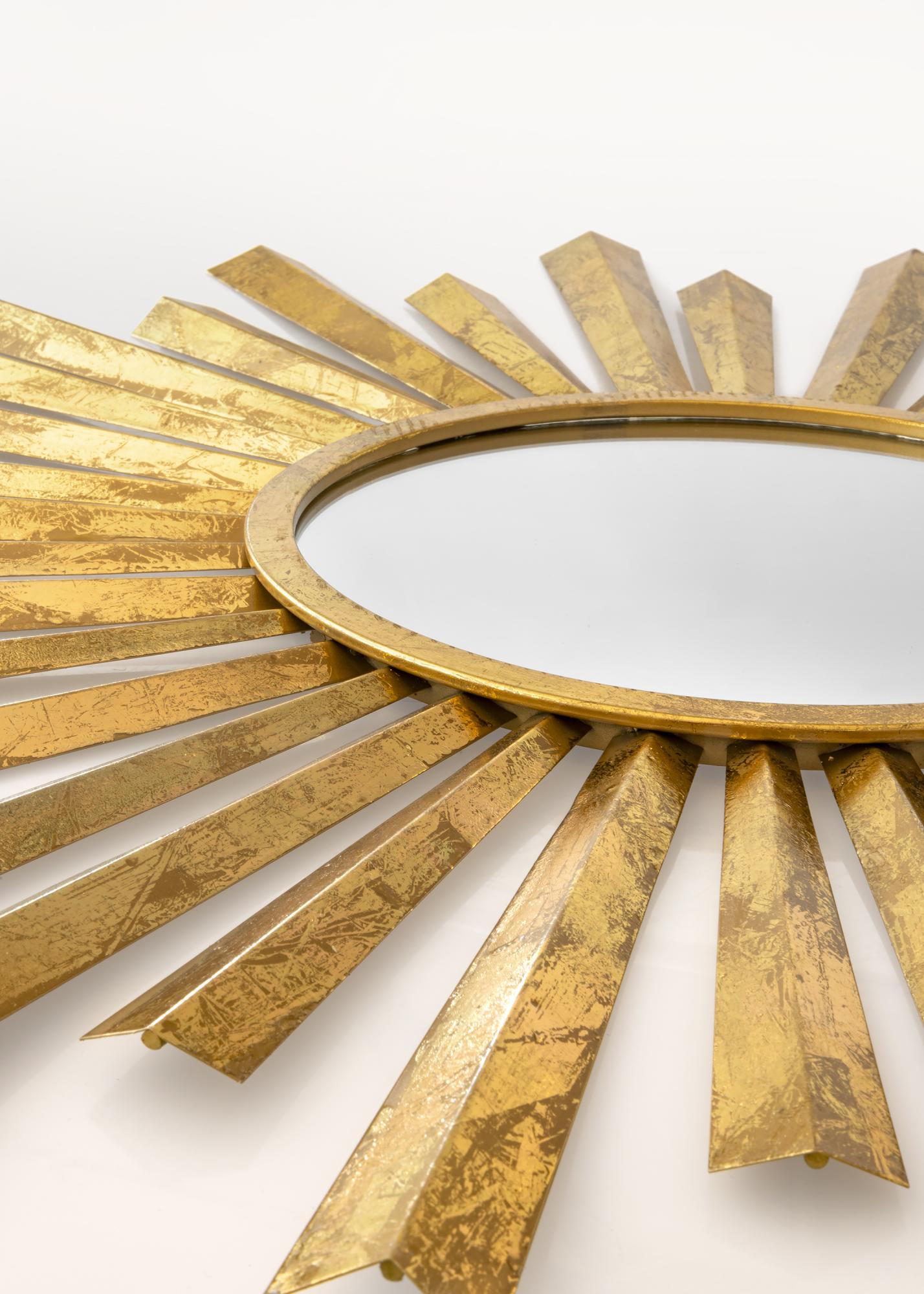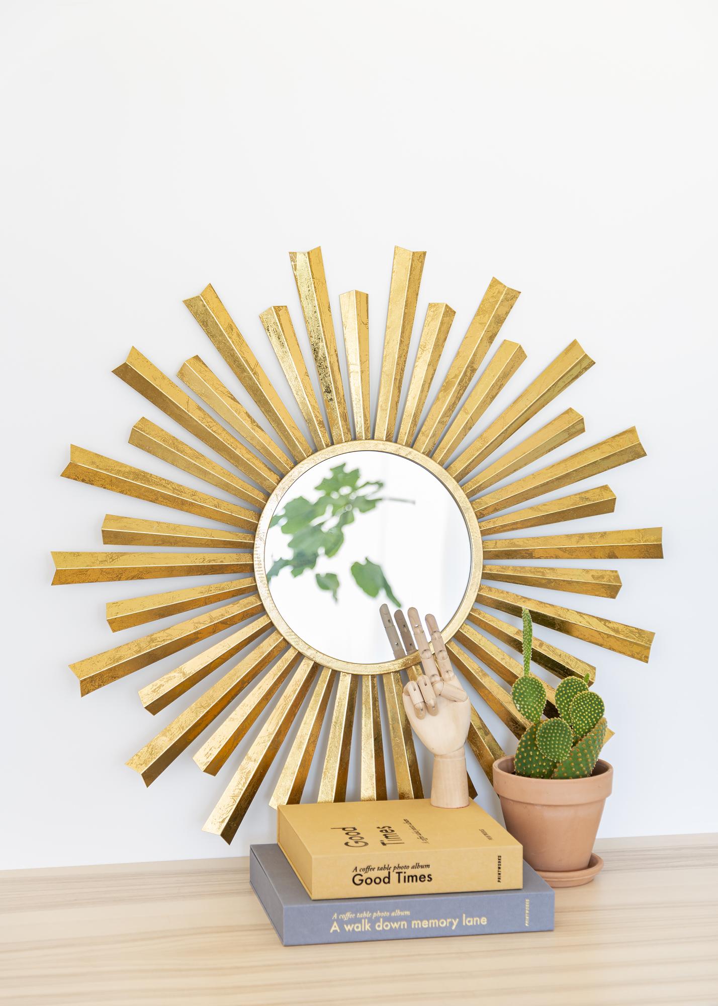 Este espejo tiene un diseño elegante y con mucho carácter. Inmediatamente nos hace pensar en el sol, y solo ese aspecto hace que el espejo sea aún más atractivo.