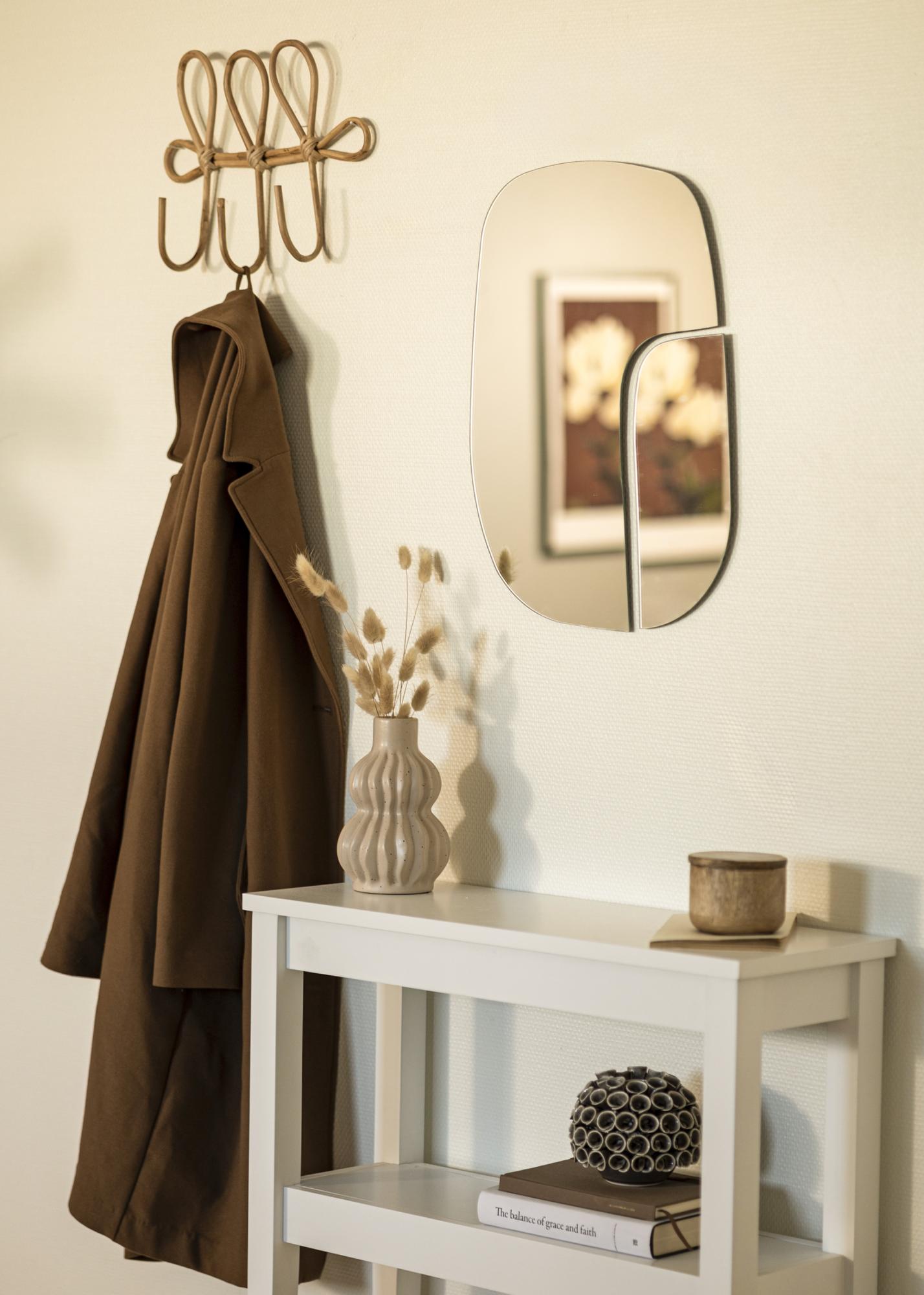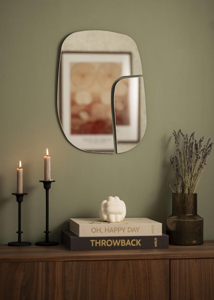 Descubre una nueva dimensión de estilo con este conjunto de espejos que ofrece una estética única para tu hogar. Con dos espejos que juntos crean una forma rectangular con esquinas suavemente redondeadas y un distintivo lado curvo hacia adentro, este conjunto se convierte en una obra de arte contemporánea en tu pared. El diseño moderno no solo brinda una ilusión de más espacio, sino que también captura la atención como elemento de diseño.