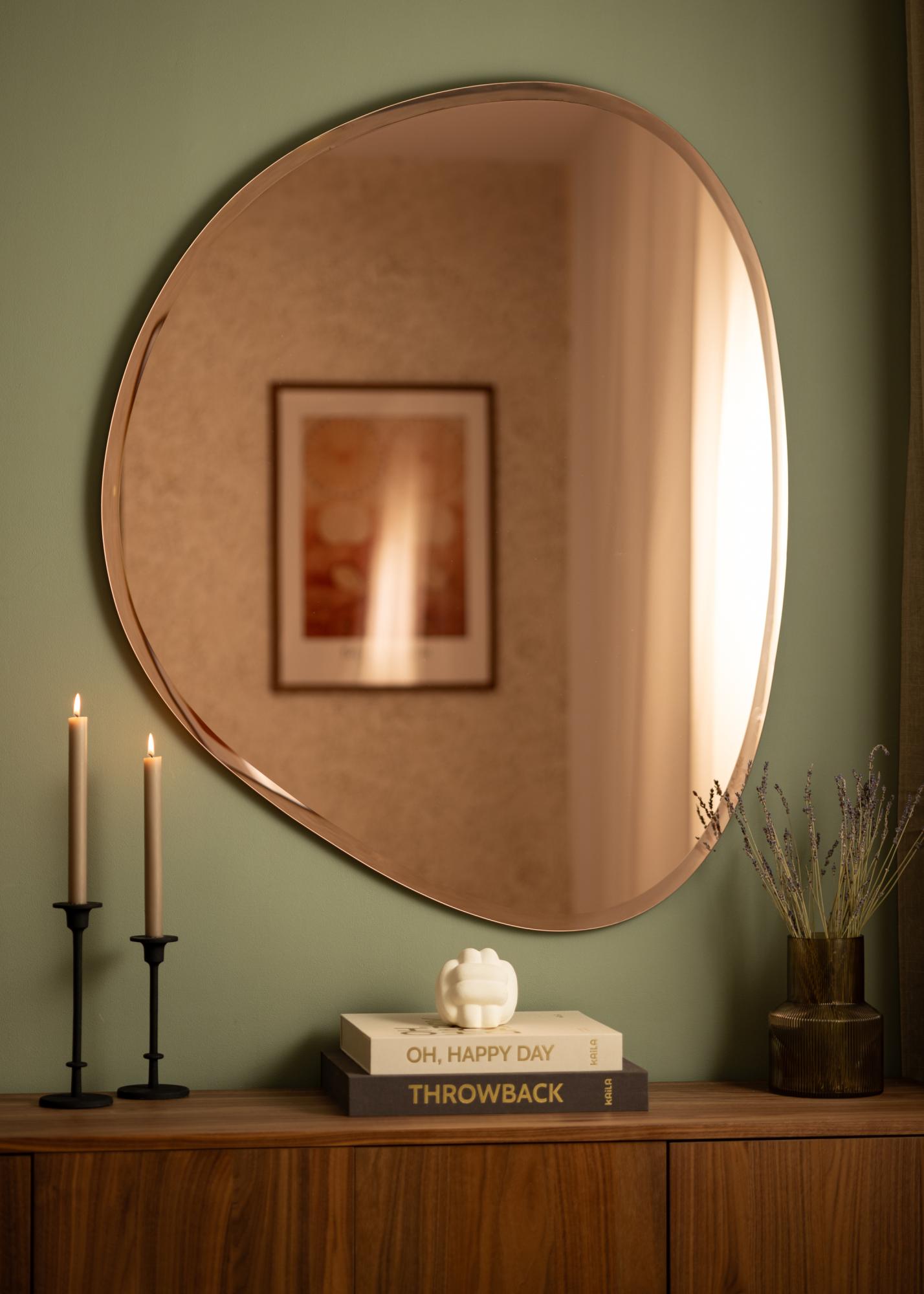Este hermoso espejo de 95x110 cm tiene un borde biselado y es de la marca danesa Incado. El biselado en el borde le da una sensación de lujo y el vidrio del espejo con tonos dorados rosa hace que este espejo sea moderno y sofisticado.