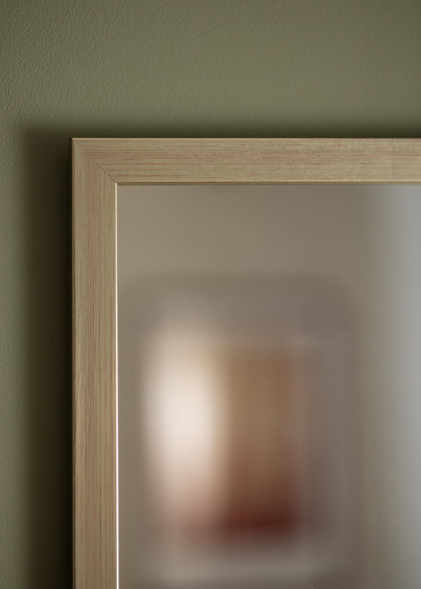 Este espejo está hecho en madera de ayo, pintado en un elegante tono plateado. El marco tiene un ancho de 22 mm y tiene un perfil recto, lo que crea una apariencia ligeramente despojada. Coloca el espejo en el recibidor, dormitorio o sala de estar y permita que refleje la luz de las lámparas y ventanas de una manera hermosa.