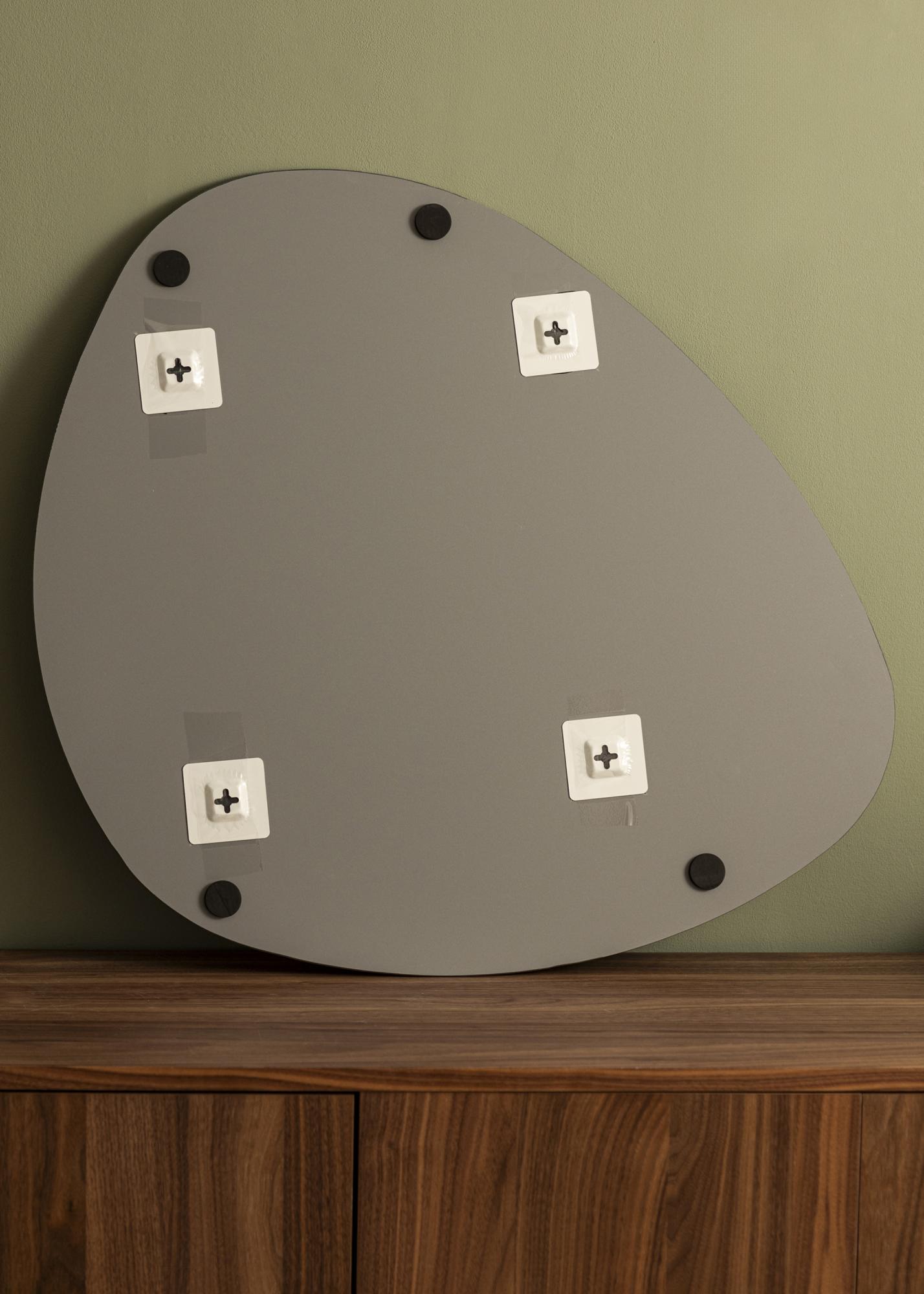 El diseño del espejo no solo es estéticamente atractivo, sino también funcional. Su forma asimétrica te permite elegir qué lado estará hacia arriba o hacia abajo, dándote la libertad de personalizar tu espacio. Sin importar dónde lo coloques, este espejo será un tema de conversación y un elemento expresivo en tu hogar.