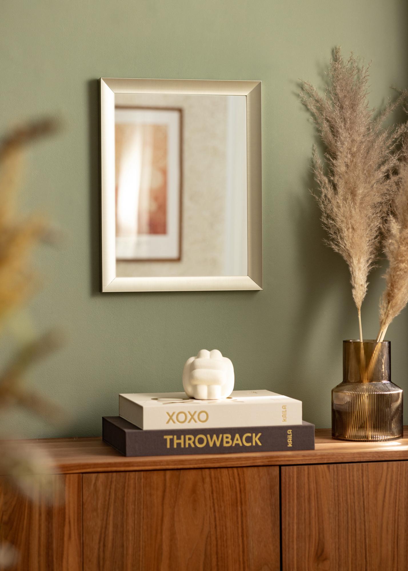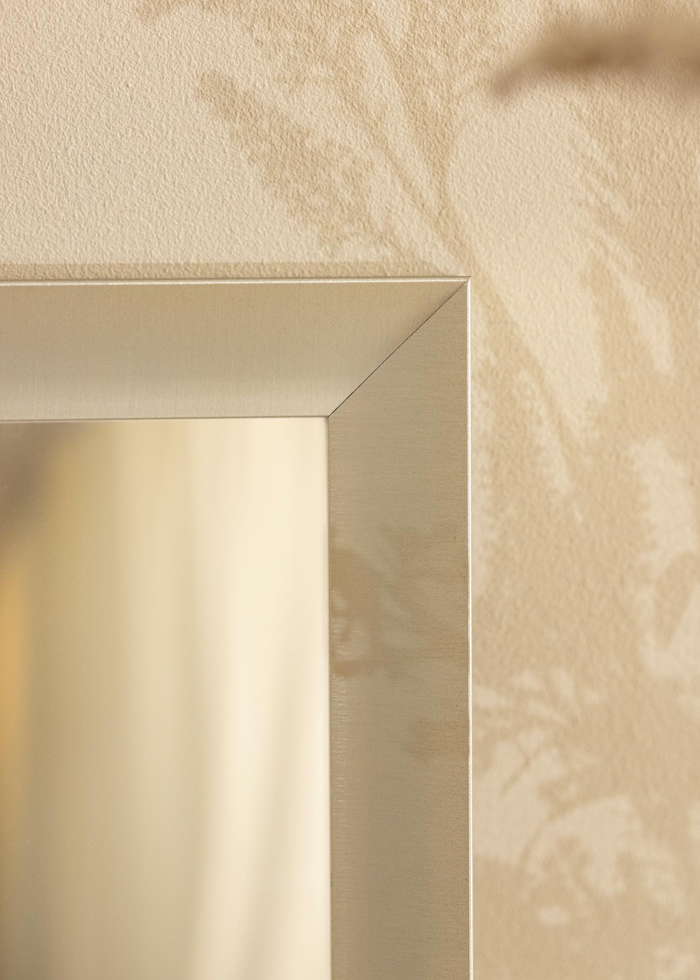 Espejo elegante con un marco de color diamante con un perfil redondeado que da una impresión suave, fabricado con alta calidad de aluminio. El color neutral y la forma limpia del espejo hacen que se adapte a cualquier habitación e interior, pero se ve mejor junto con colores pastel. Cuelga el espejo junto con cuadros gráficos y fotografías con marcos negros y combínalo con detalles decorativos de vidrio o negro para crear una unidad en la habitación.