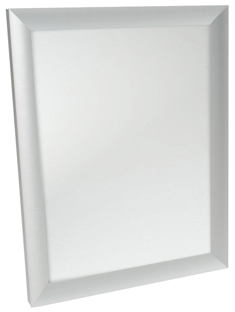 Espejo con un elegante marco de aluminio en un tono plateado semimate, fabricado en Alemania. La expresión elegante y el discreto color plateado del espejo hacen que se adapte a todo tipo de estilos de decoración y entornos, pero se destaca especialmente en combinación con colores suaves o en un entorno con tonos exclusivamente en escala de grises. Combina el espejo con cuadros con marcos plateados, negros o blancos, o cuélgalo encima de un elegante aparador como punto focal.