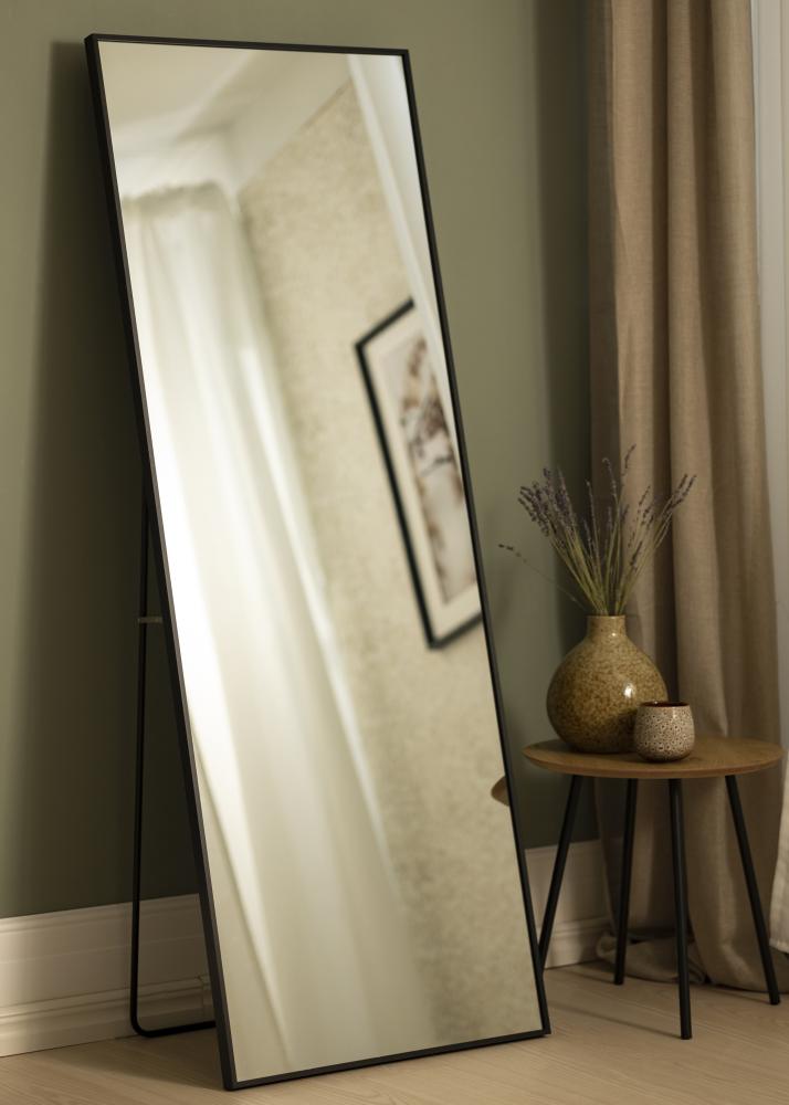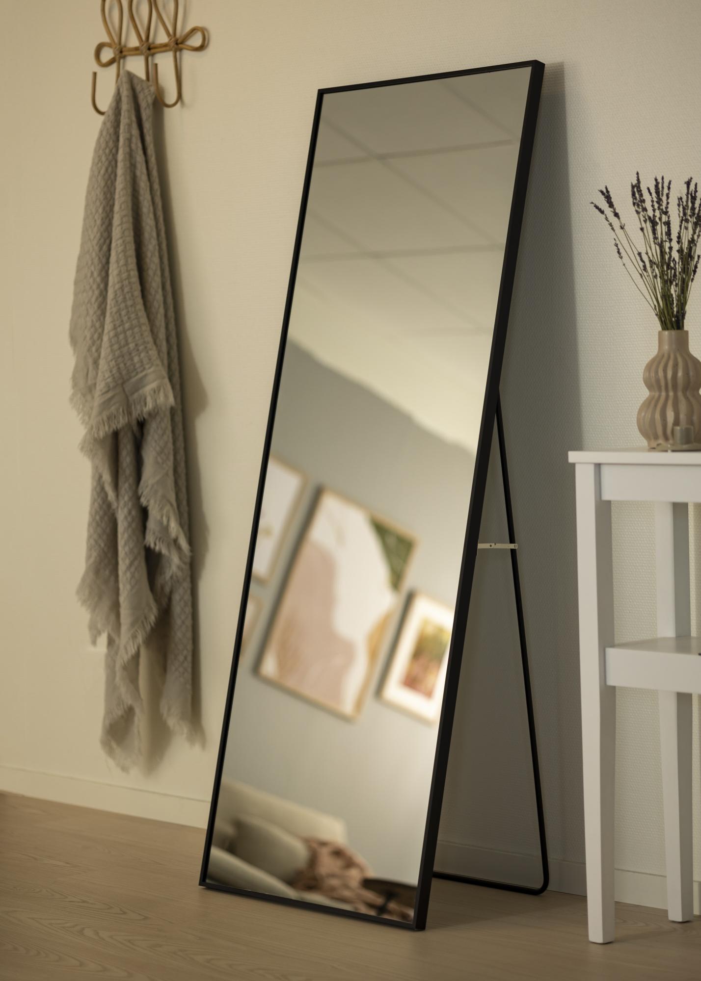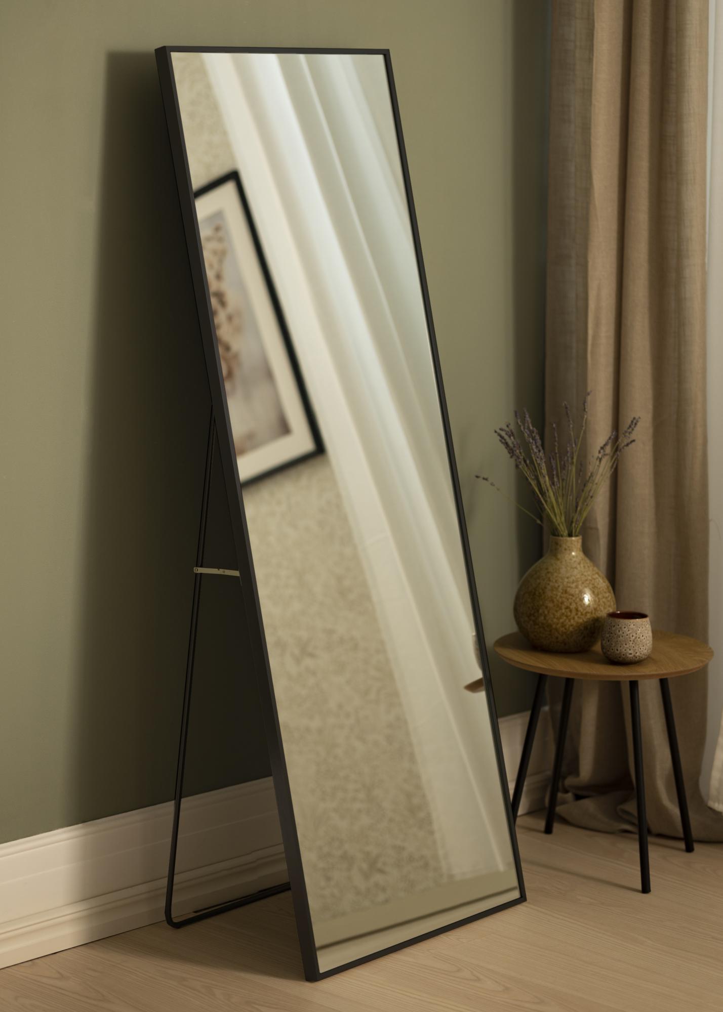 Descubre el diseño elegante y funcional de nuestro espejo de pie. Con sus generosas dimensiones de 55 x 150 cm, este espejo será un detalle impresionante en tu hogar. Su forma rectangular se complementa con un sofisticado marco de aluminio negro delgado, que añade una sensación moderna y elegante a cualquier habitación.