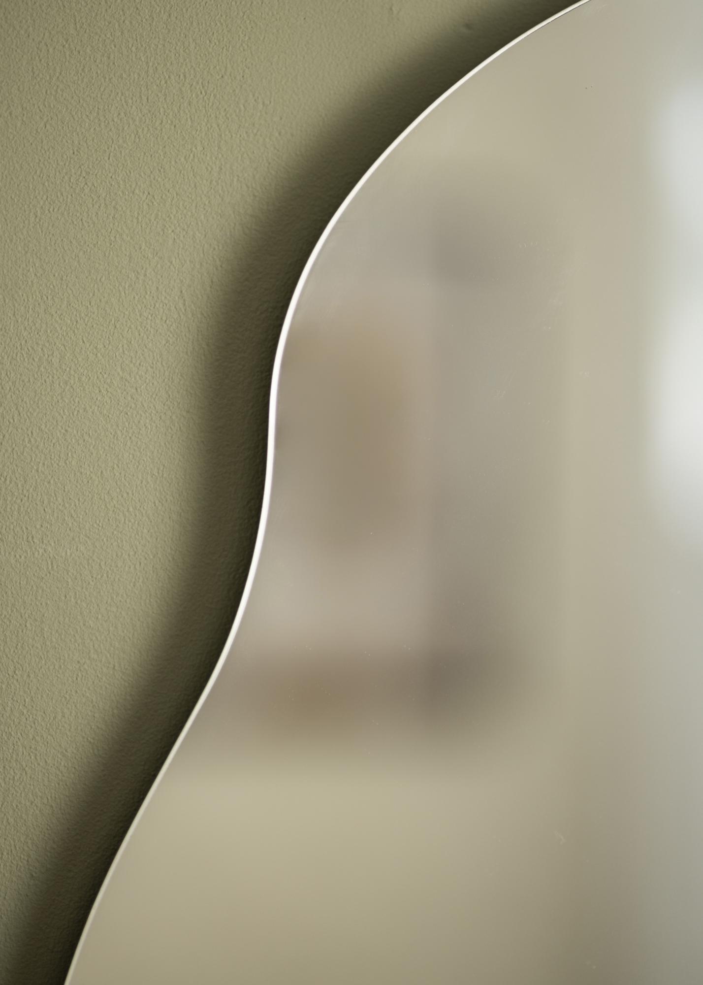Thin Cloud es un espejo fino y alargado con una forma única ondulada. Su diseño ondulado crea una expresión suave que se combina bien con muebles de líneas rectas, como mesas, cómodas y estanterías. Este espejo de pared mide 40x80 cm y se puede montar en tus paredes con la ayuda del soporte de pared en la parte trasera.