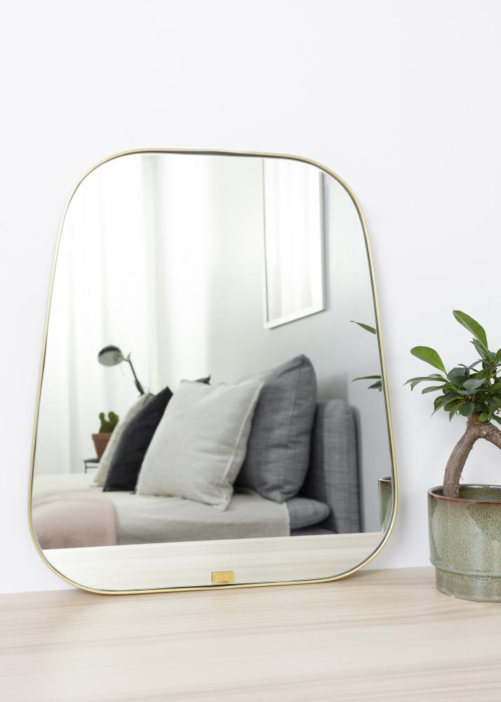 ¡Un espejo de pared que destaca entre los demás! Con su forma creativa y hermosa, este espejo es un componente perfecto para la decoración en la mayoría de los hogares, y en la mayoría de las habitaciones. El espejo está rodeado por un marco fino y elegante de latón, lo que le da una apariencia elegante.