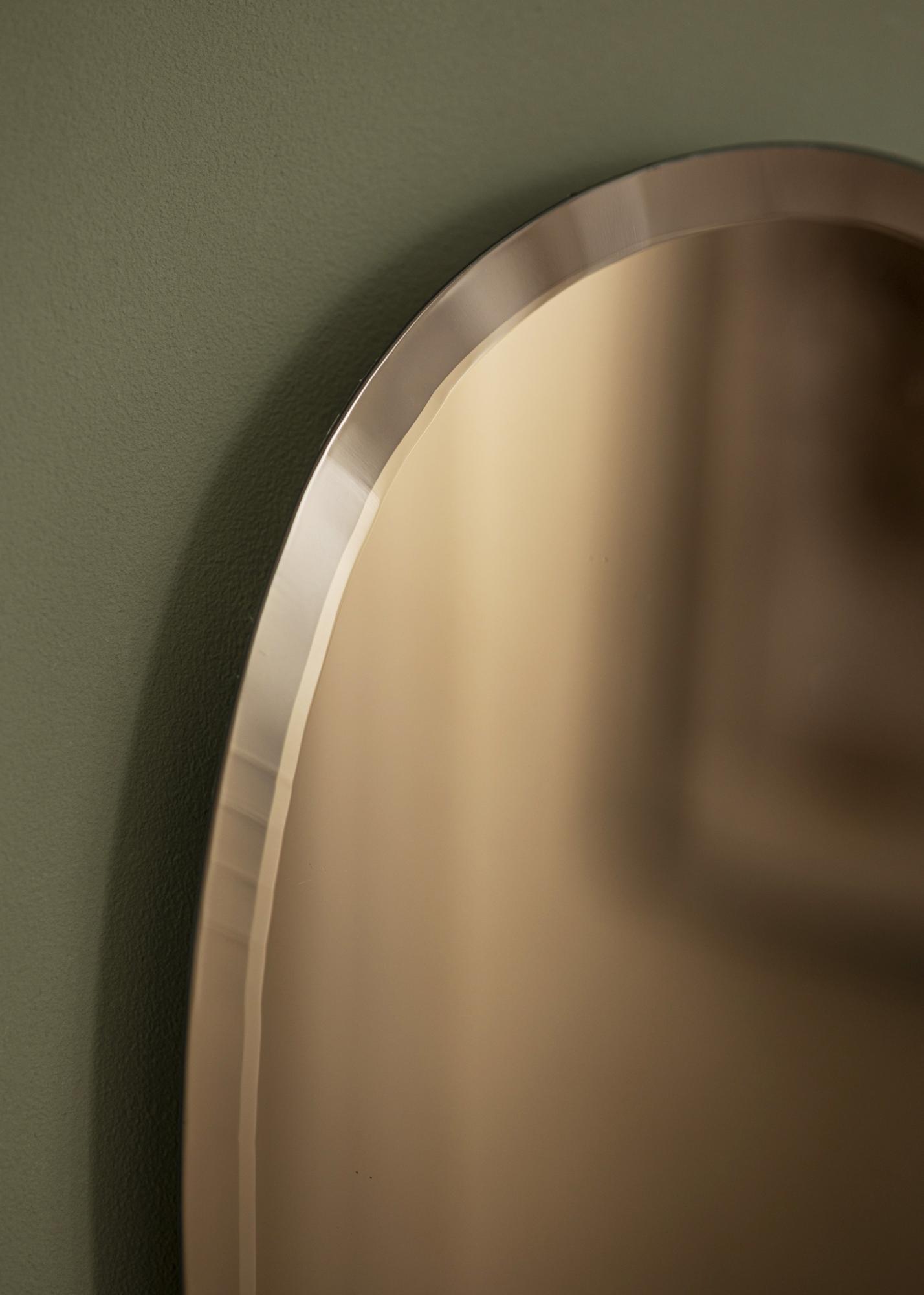 Este espejo tiene una forma distinta y fluida que irradia una sensación orgánica, lo que lo convierte en un acento llamativo en la habitación. El vidrio del espejo en tono bronce brinda un brillo cálido y acogedor, y agrega un toque de encanto retro sin abrumar el espacio circundante.