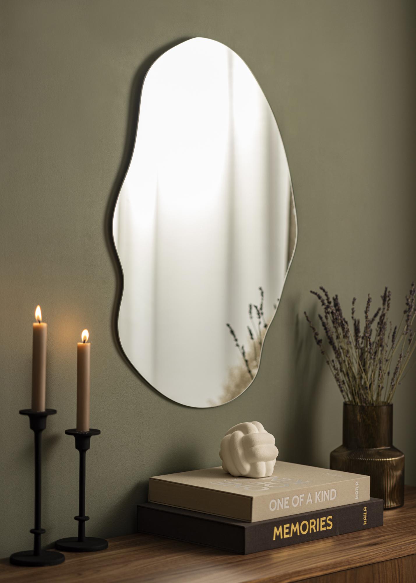 ¿Tienes muchas formas clásicas en tu decoración, como mesas cuadradas o alfombras redondas? Entonces, un espejo con una forma diferente es una gran adición para crear más dinamismo en la habitación. Wide Cloud es un espejo de pared de 50x70 cm con un diseño inspirado en las nubes. La forma bellamente ondulada es muy elegante y el fino vidrio del espejo realza aún más la sensación elegante.