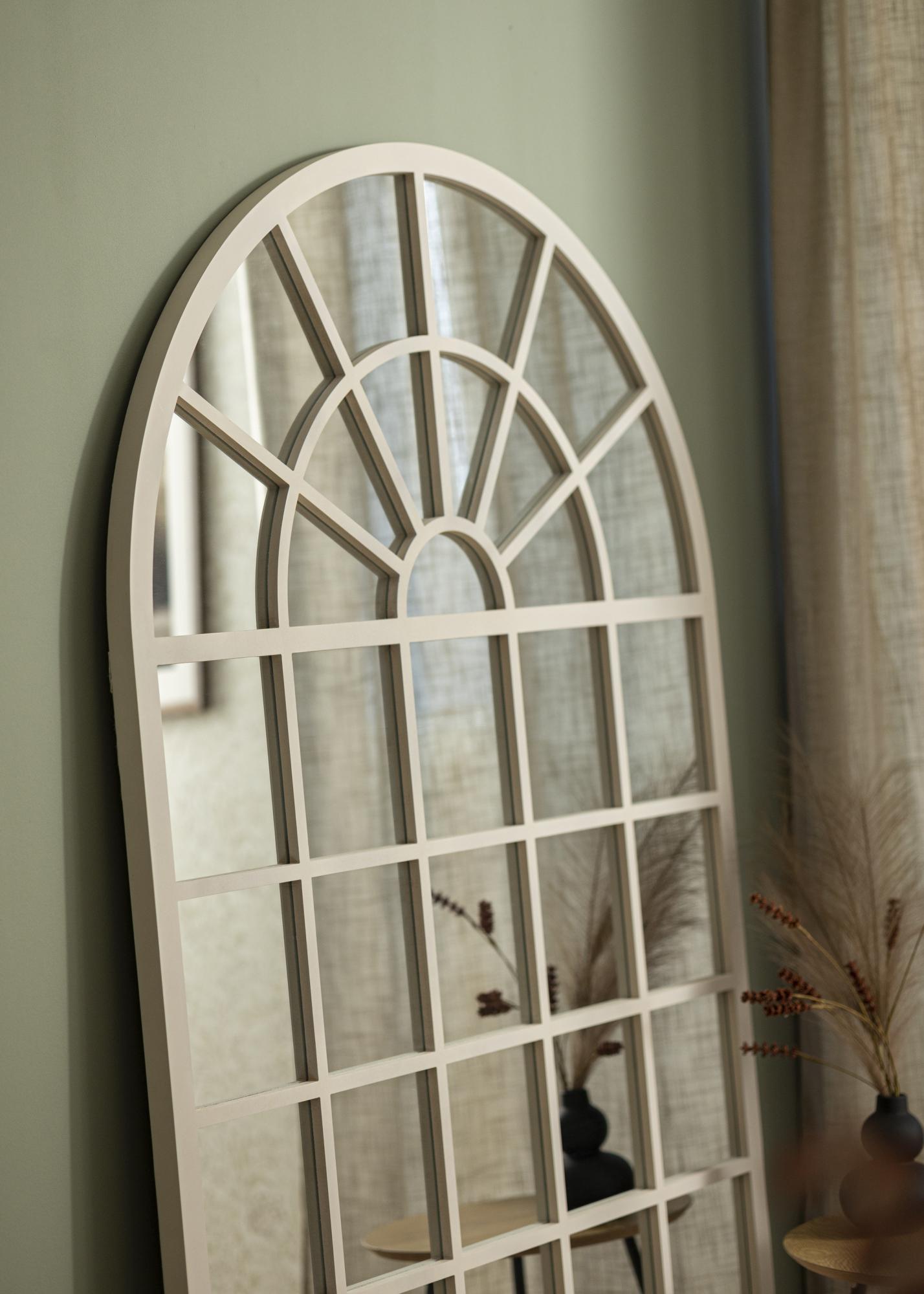 Crea una atmósfera de sofisticación y encanto con este hermoso espejo. No solo es un elemento funcional, sino también una expresión de estilo y gusto personal. Deja que esta hermosa pieza beige con forma de arco sea tu próximo complemento en tu decoración.