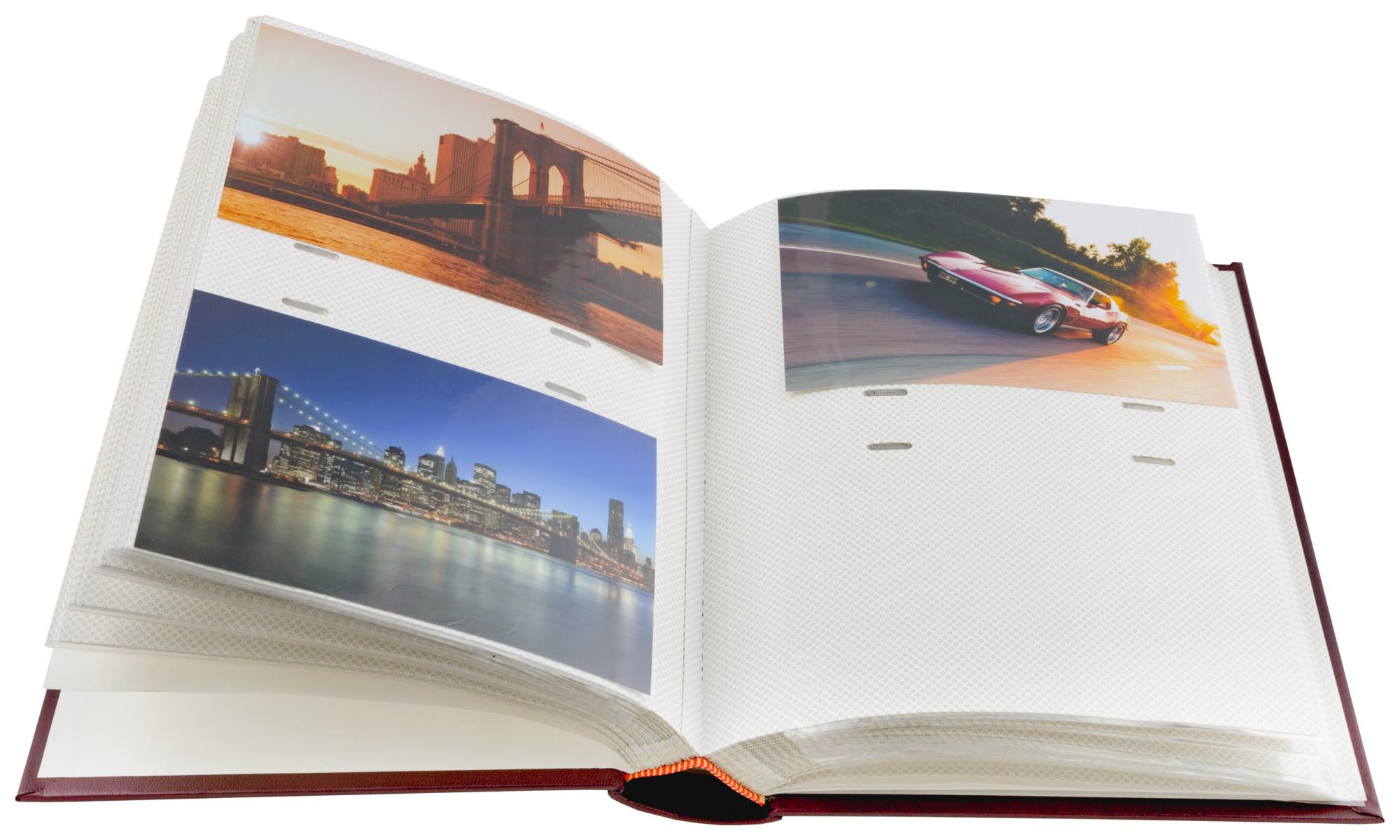Exclusive Line Super Burdeos es un álbum de fotos encuadernado en tapa dura con cubiertas extra fuertes que le dan una sensación de alta calidad. El álbum tiene bolsillos para fotos para 200 imágenes en tamaño 10x15 cm y un bolsillo para negativos. Las páginas del álbum libre de ácido son blancas y tienen un espacio para escribir junto a cada imagen.