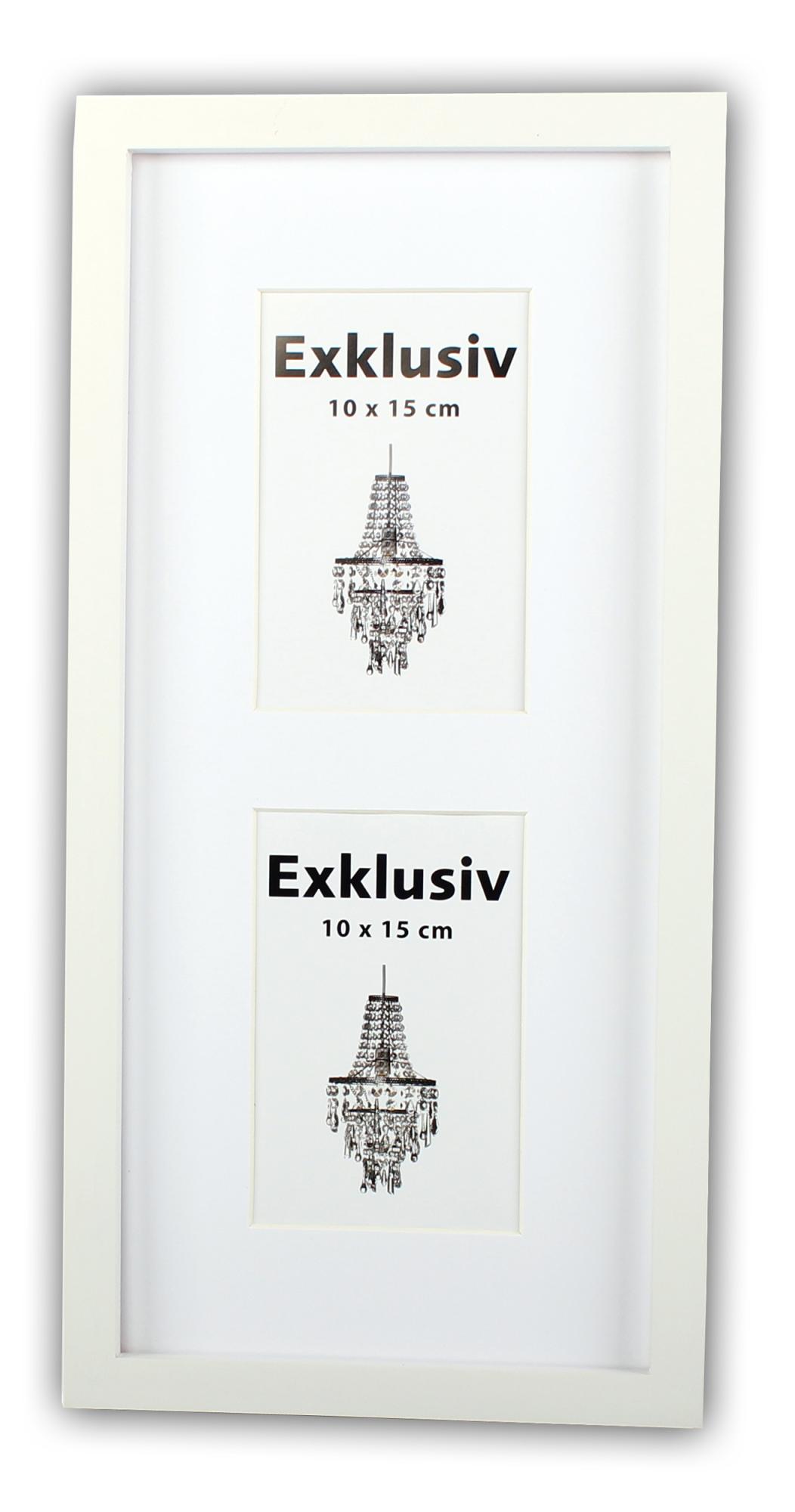Exklusiv Blanco es un marco collage de madera con un perfil cuadrado ancho. Con su profundidad de 25 mm, la imagen sobresale de la pared y crea una sensación 3D fascinante para tus hermosas fotos. El marco tiene espacio para 2 imágenes en formato vertical de 10x15 cm.