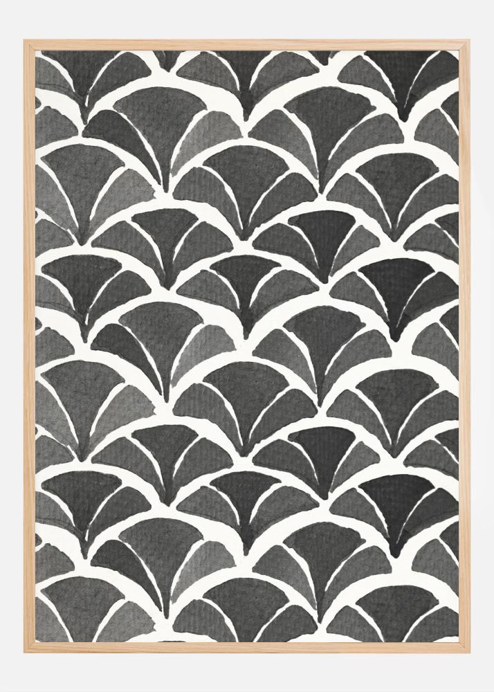 Aporta a tu espacio un toque de elegancia artística con este póster que presenta un cautivador patrón de plumas de hojas en negro y blanco. Este material impreso tiene un patrón repetitivo que recuerda a ventiladores vintage, que están dispuestos rítmicamente en toda la superficie para crear una sensación de movimiento y simetría. El contraste elegante entre el negro y el blanco ofrece un aspecto clásico que se adapta a muchos estilos y ambientes interiores diferentes.