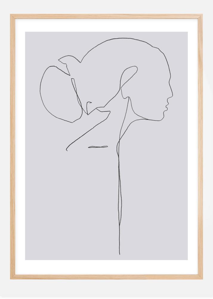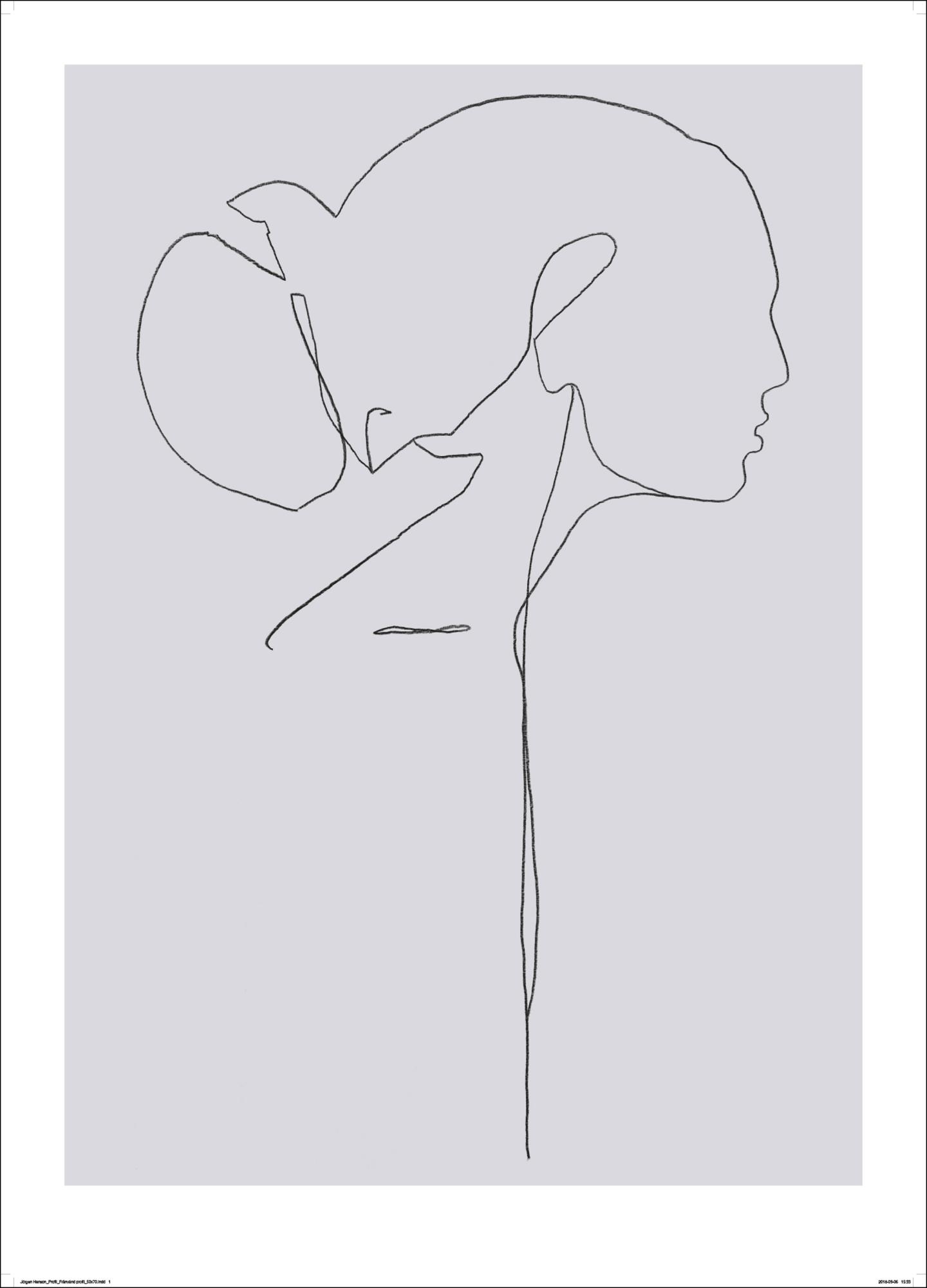 Hermoso y elegante arte lineal en forma de una mujer con el cabello recogido representada de perfil, creada por Jörgen Hansson Art. Un póster ideal para combinar con otras obras de arte de Jörgen Hansson en la serie Female Lines para crear un collage con el mismo tema.