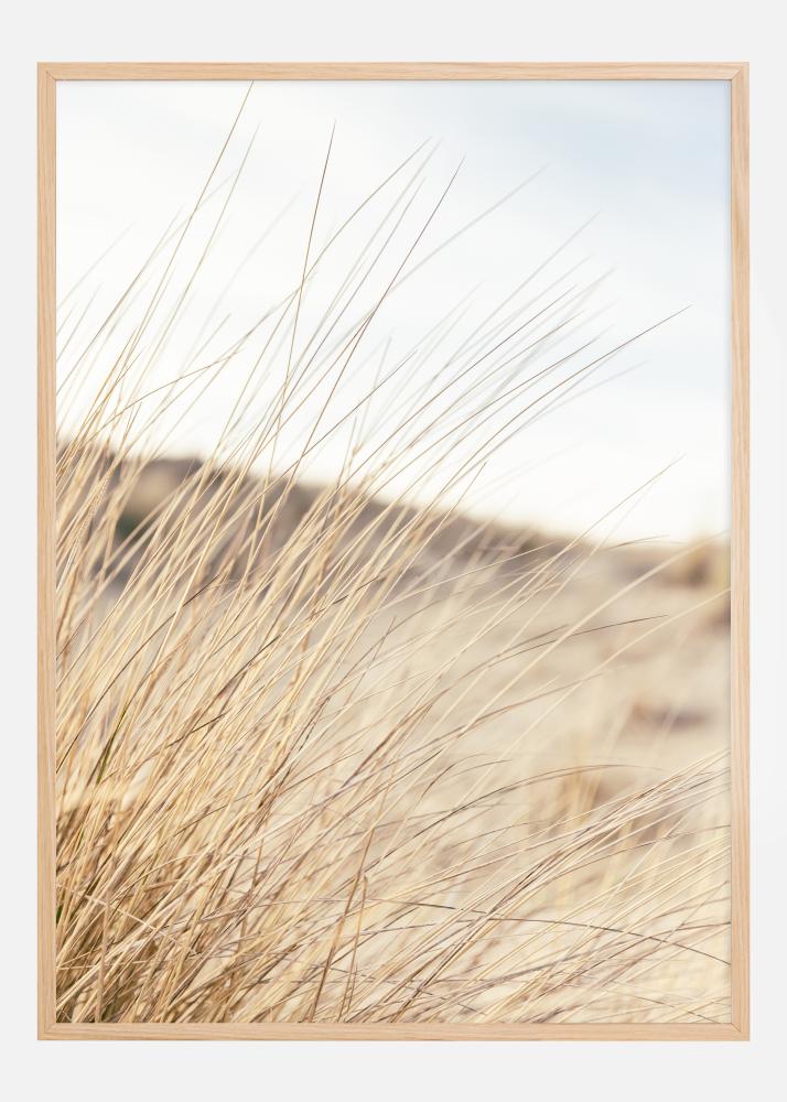 Este póster retrata el suave y tranquilo paisaje de un campo de hierba seca, donde sus matices naturales de beige y marrón se mezclan con un fondo difuso de suaves tonos claros. La composición calmante y cercana a la naturaleza invita a la reflexión y tiene un efecto relajante, lo que la hace ideal para habitaciones destinadas a la relajación y recuperación.