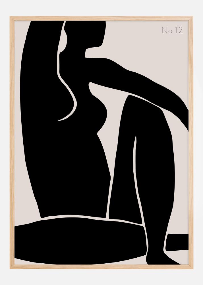 El contraste entre la figura negra y el fondo claro no solo es audaz, sino que también ilustra el encuentro entre luz y sombra, forma y vacío, lo que proporciona un fuerte efecto gráfico. 'No. 12' es un póster que es tanto una experiencia de arte moderno como un elemento decorativo, y es perfecto para aquellos que buscan una estética contemporánea con un toque de dramatismo. Es ideal para estilos de interior minimalistas o monocromáticos, donde puede servir como un fuerte acento solitario o combinarse con otras obras similares para crear una impresionante pared de imágenes.