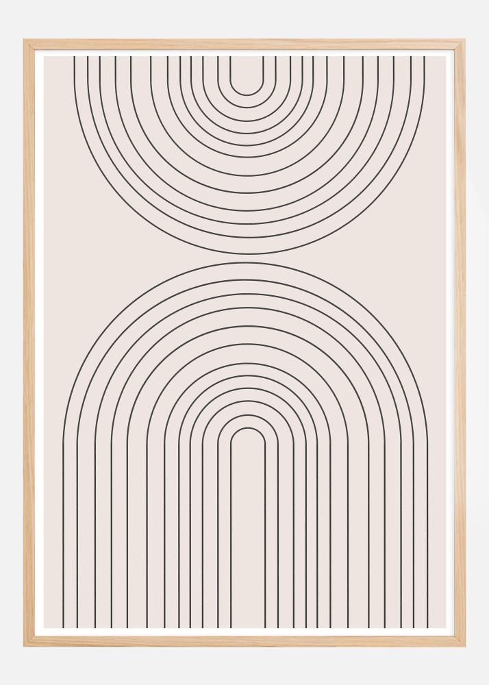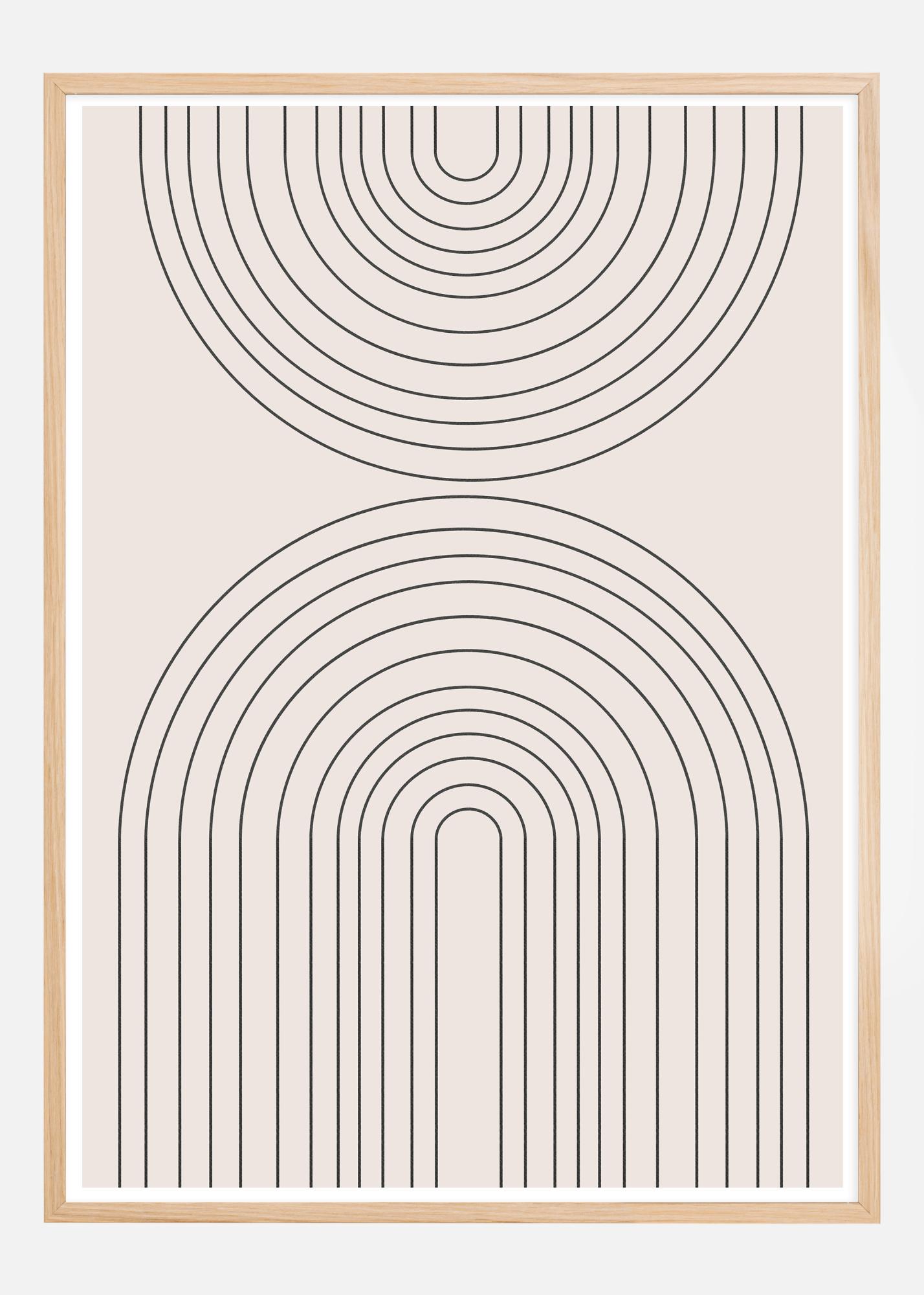 Este póster de diseño elegante presenta una serie intrincada e hipnotizante de arcos entrelazados que forman dos formas de hemisferio distintas. Con una estética sofisticada y minimalista, las líneas son exquisitas y están colocadas con precisión contra un fondo neutro y calmante, lo que lo convierte en un fondo perfecto para una decoración moderna y de tendencia. Su coloración discreta en negro sobre blanco roto facilita a los clientes encontrar y combinar esta impresión con diferentes colores y muebles.