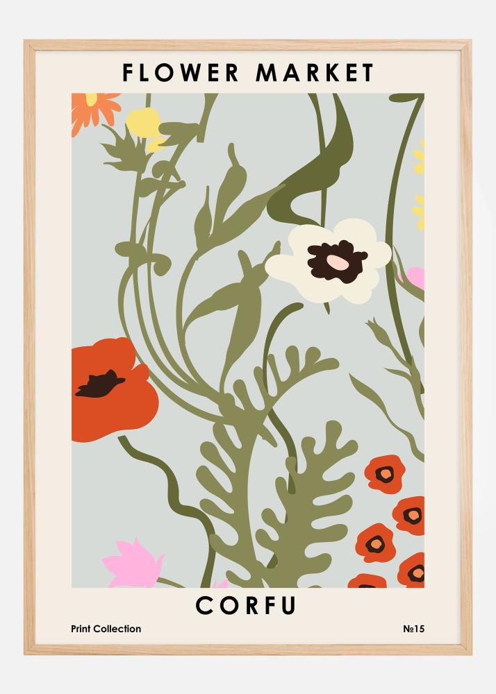 "CORFU" está elegantemente impreso en la parte inferior, por encima de "Print Collection ?15", lo que refuerza el sentido de lugar y pertenencia. Esta impresión iluminaría cualquier espacio, e introduciría un poco del encanto del Mediterráneo en tu hogar. La paleta de colores está inspirada en la rica flora de Corfú, proporcionando un toque de color y un interés visual en cualquier entorno donde se coloque. Es un póster perfecto para cualquiera que desee rodearse del recuerdo de las playas soleadas de Corfú y sus animados mercados de flores.