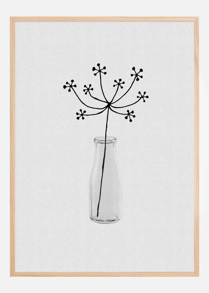 El contraste entre la flor negra y el fondo blanco ofrece una experiencia visual que es tanto gráfica como elegante. Este es un póster que, con sus líneas limpias y paleta de colores sencilla —negro sobre blanco—, proporciona una sensación contemporánea mientras que posee un encanto atemporal. Es una impresión perfecta para aquellos que buscan algo discreto pero al mismo tiempo expresivo para complementar su hogar u oficina.